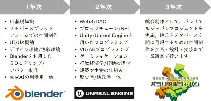 将来的に自治体や企業と本学科在校生が連携し、各自治体のメタバース空間を制作することで地方創生・地域活性化に寄与するとともに、より実践的な学びの場の提供を目指します。