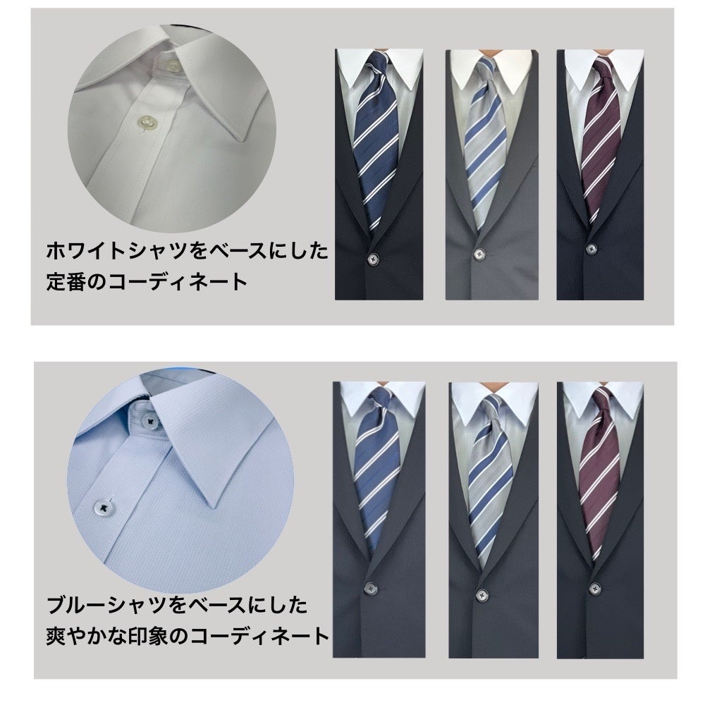ネクタイの色はブルー・シルバー・ワインから選べます。