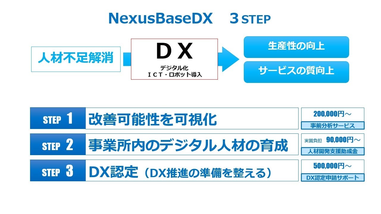弊社では、介護施設における様々な課題を解決するべく、介護福祉分野のDX推進を下記の3ステップにわたってご支援いたします。