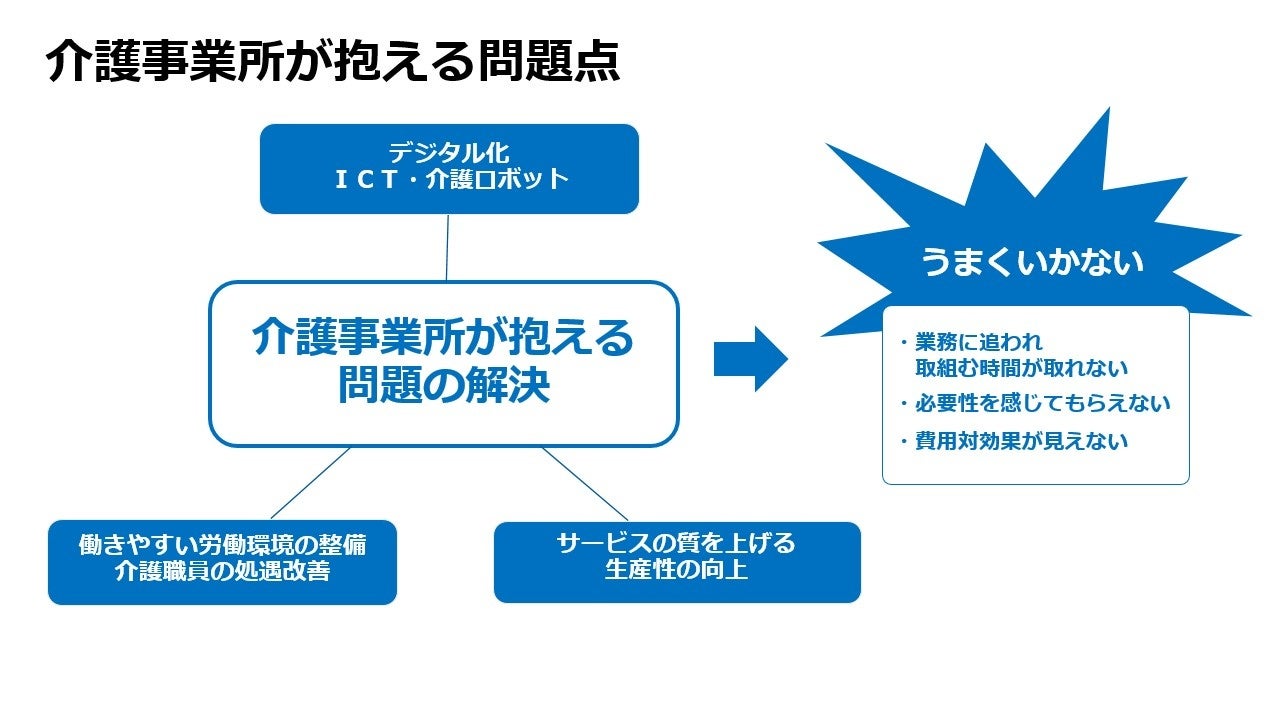 これらのステップを通じてDXを実現することで、介護施設における生産性の向上やサービスの質向上を達成し、本質的な経営課題の解決に繋げていきます。