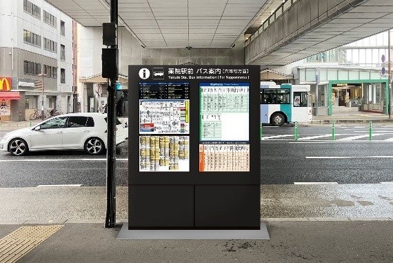 ※1 バスの時刻表や広告などをデジタルサイネージ上にリアルタイムに表示できるバス停。