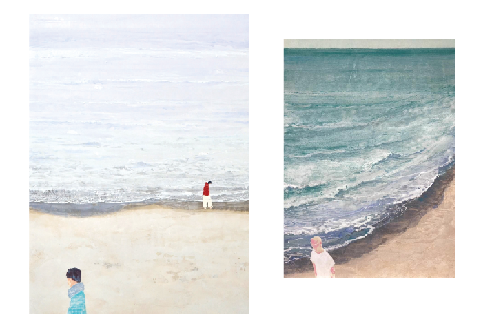 本展の出展作品は、これまで能登の作品の象徴的だった都市風景から、鎌倉の海に場面を移し、遠くに見える水平線を線で描いた5連の大作 ≪波間≫ がメインとなります。鑑賞者は広がる海の景色をどのように捉え、思考を重ね、想いを馳せるのでしょうか。ぜひ能登真理亜の新境地をご覧ください。皆さまのご来場を心からお待ちしております。