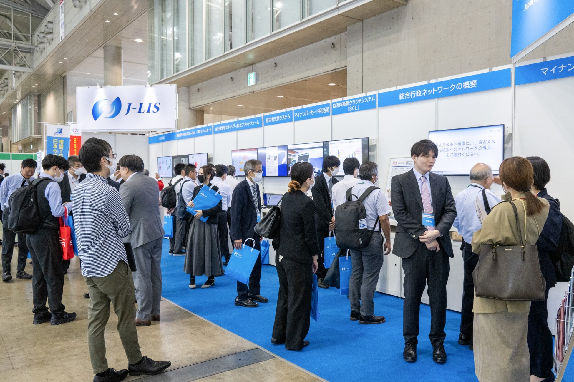 地方公共団体情報システム機構(J-LIS)が主催しております地方公共団体向けのシステム展示会です。2023年度は過去最大125社・団体の出展者様にご参加いただき、来場者は2日間で約7,000名。2024年で33回目を迎える日本最大級の地方公共団体向け情報システム展示会となっております。