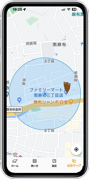 マーキングされた熊の出没エリア半径200m以内に近づいた場合