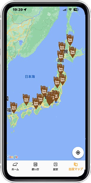 また熊出没スポットをみんなで共有し、危険な熊におそわれないようにするための機能も備えております。