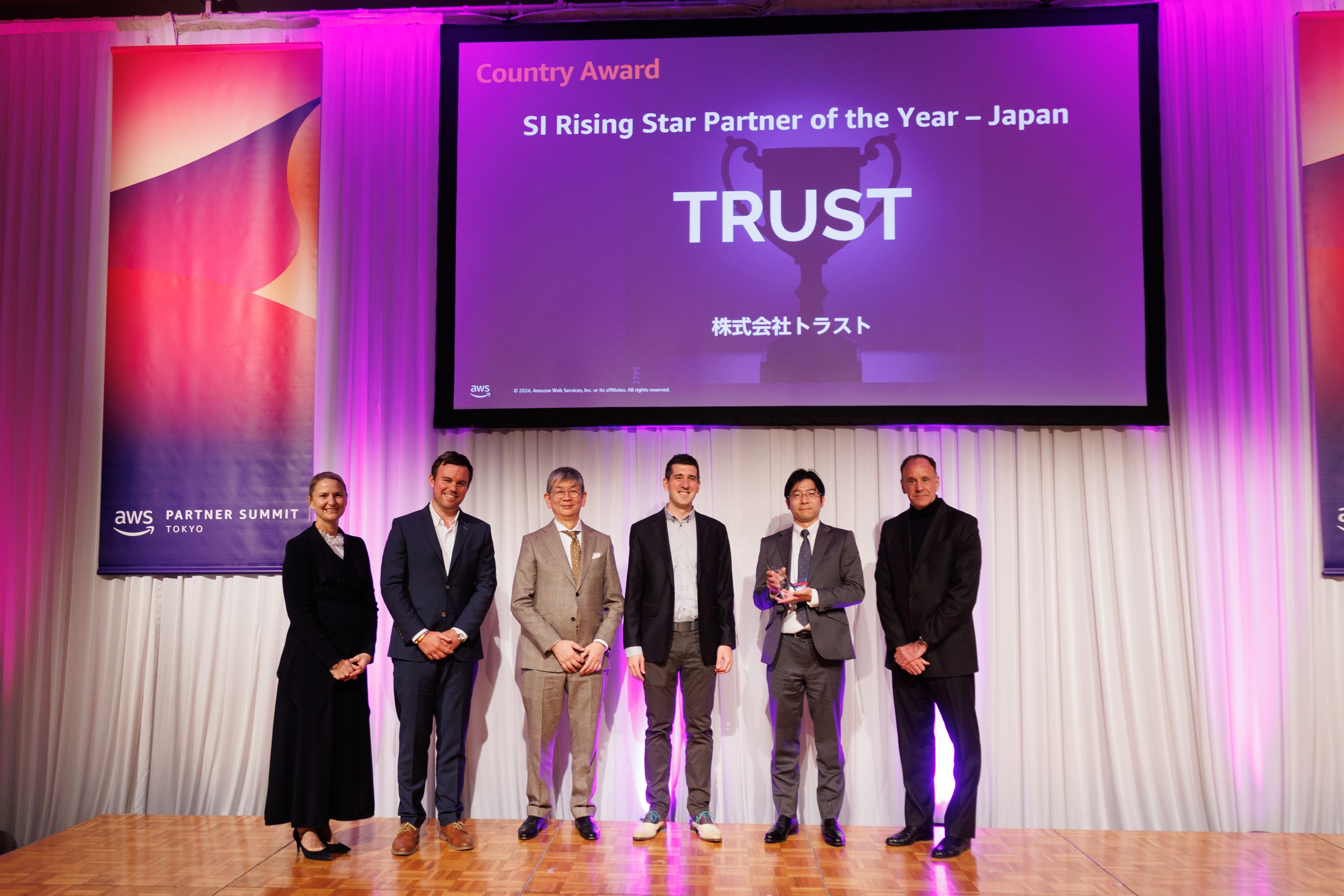 株式会社トラスト(本社:新潟県小千谷市、代表取締役社長:品田 誠一郎、以下「トラスト」)は、アマゾン ウェブ サービス(以下、AWS)が2024 年 3 月 15 日の AWS Partner Summit Japan レセプションパーティにおいて発表された AWSパートナーネットワーク(APN)アワードにおいて、「SI Rising Star Partner of the Year – Japan」を受賞したことをお知らせします。