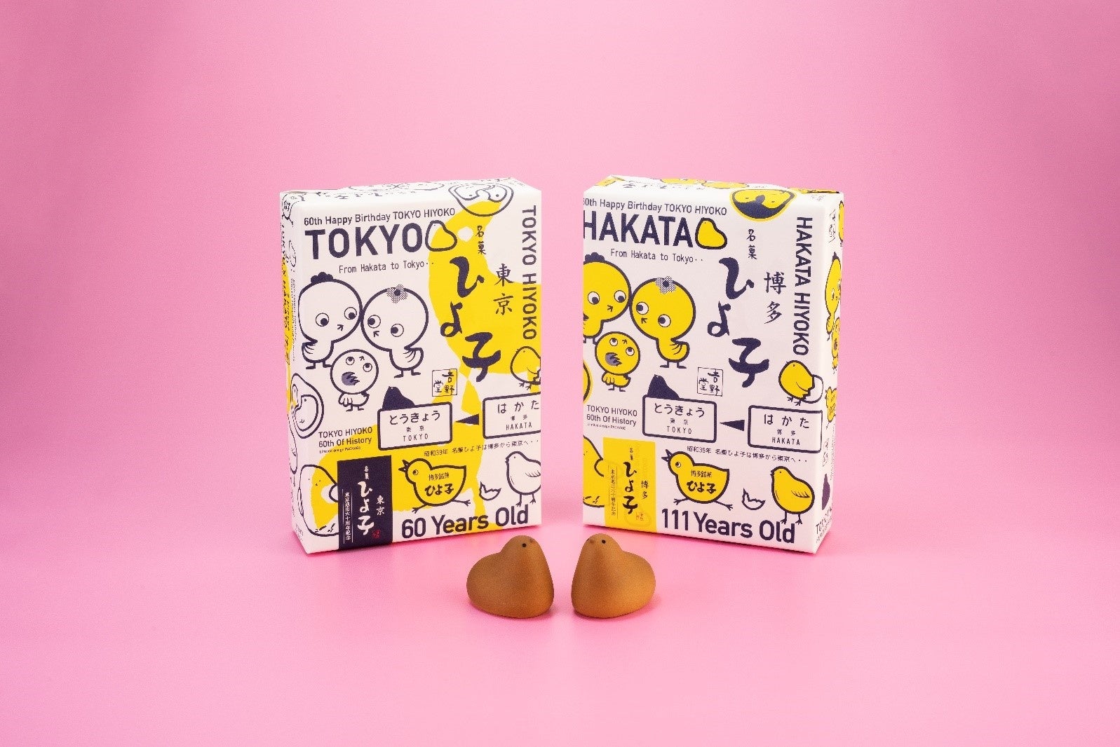 博多ひよ子は名菓ひよ子111周年を、東京ひよ子は東京進出60周年を英語で表した、ちょっとレトロでかわいいデザインの記念パッケージです。