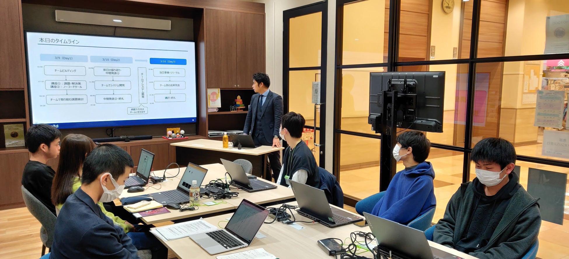 9名の高校生が3チームに分かれて「地域の課題を解決するアプリをノーコードでつくる」というテーマでノーコードハッカソンを実施いたしました。
