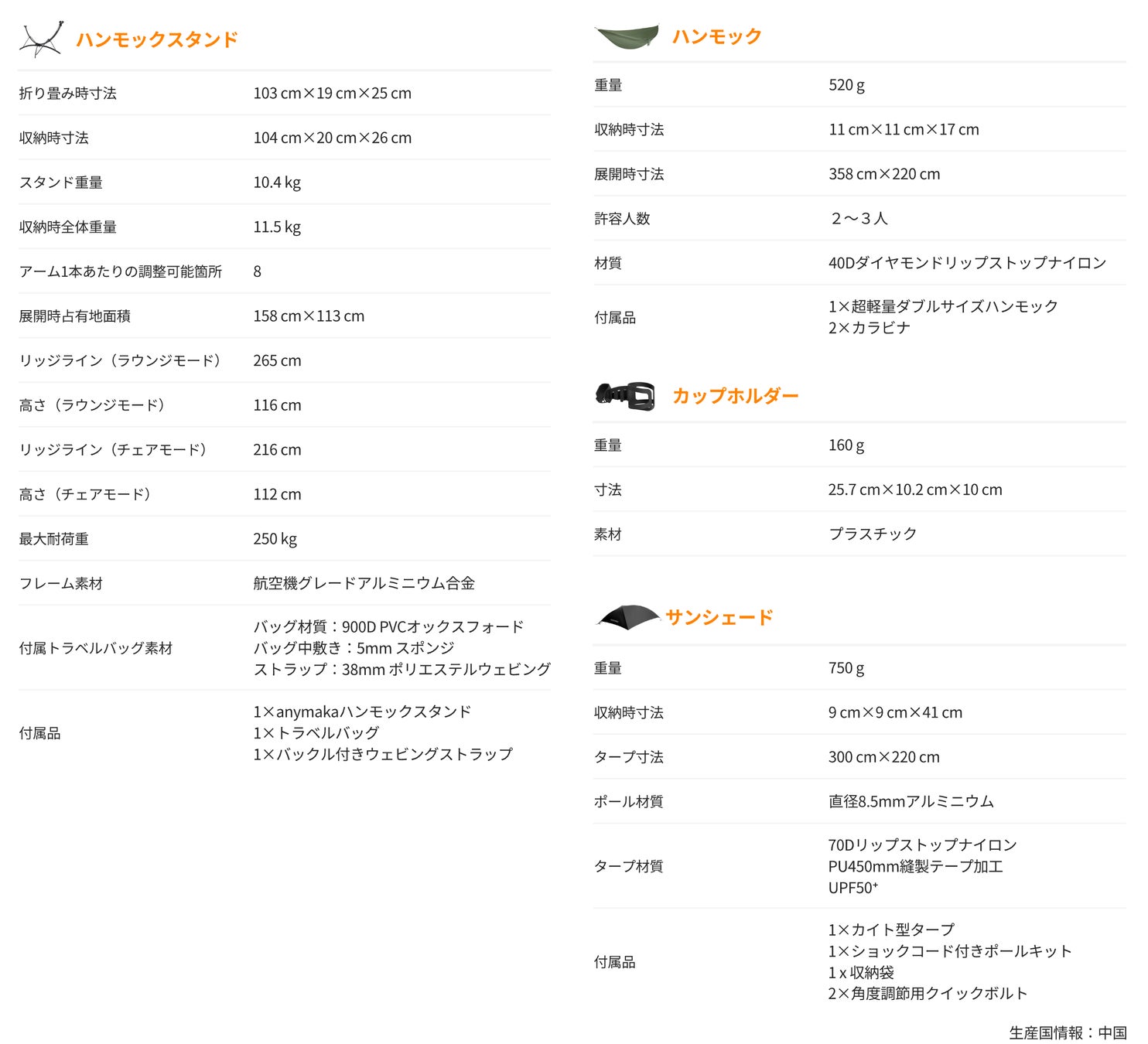 anymakaは2020年に香港で設立した、アウトドアを愛する二人のアイデアから生まれたハンモックブランドです。ハンモックの語源はスペイン語の "hamaca "で、その語源はアラワカン語(タイノー語)の"-maka "に由来します。私たちはそこに "Anywhere "という言葉を取り入れ、"anymaka"(エニーマカ)というブランド名を作りました。 より軽く、より丈夫で、ポータブル性に優れたハンモックスタンド「anymaka」が、いつでもどんな場所でも、あなただけの至福空間を瞬時に生み出せます。