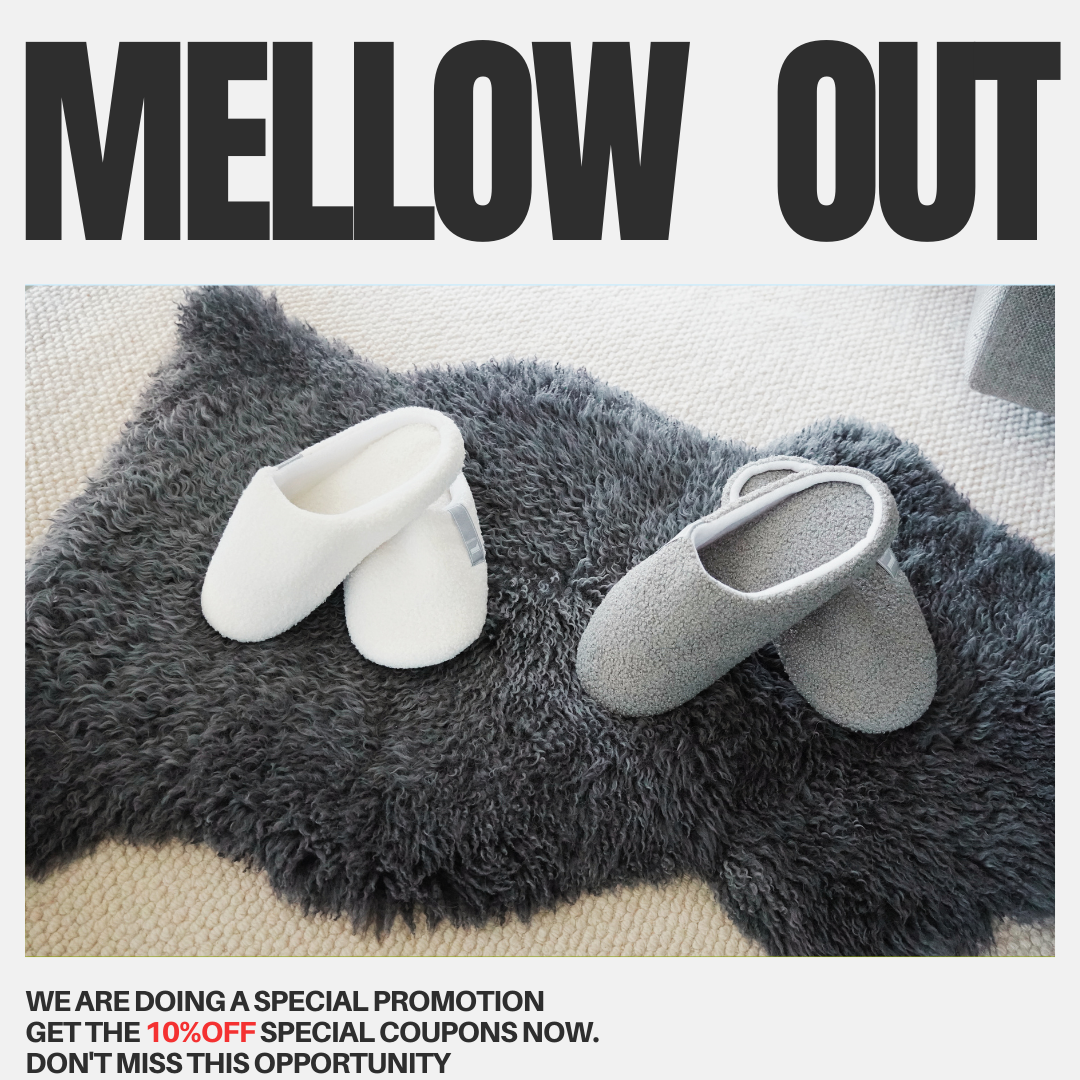 「MELLOW OUT」公式アカウントのフォロー・いいねを頂いた方に、期間限定でAmazon10%OFFクーポンをプレゼント。このお得な機会に「MELLOW OUT」のフットウェアで至福の時間を過ごしてみませんか?