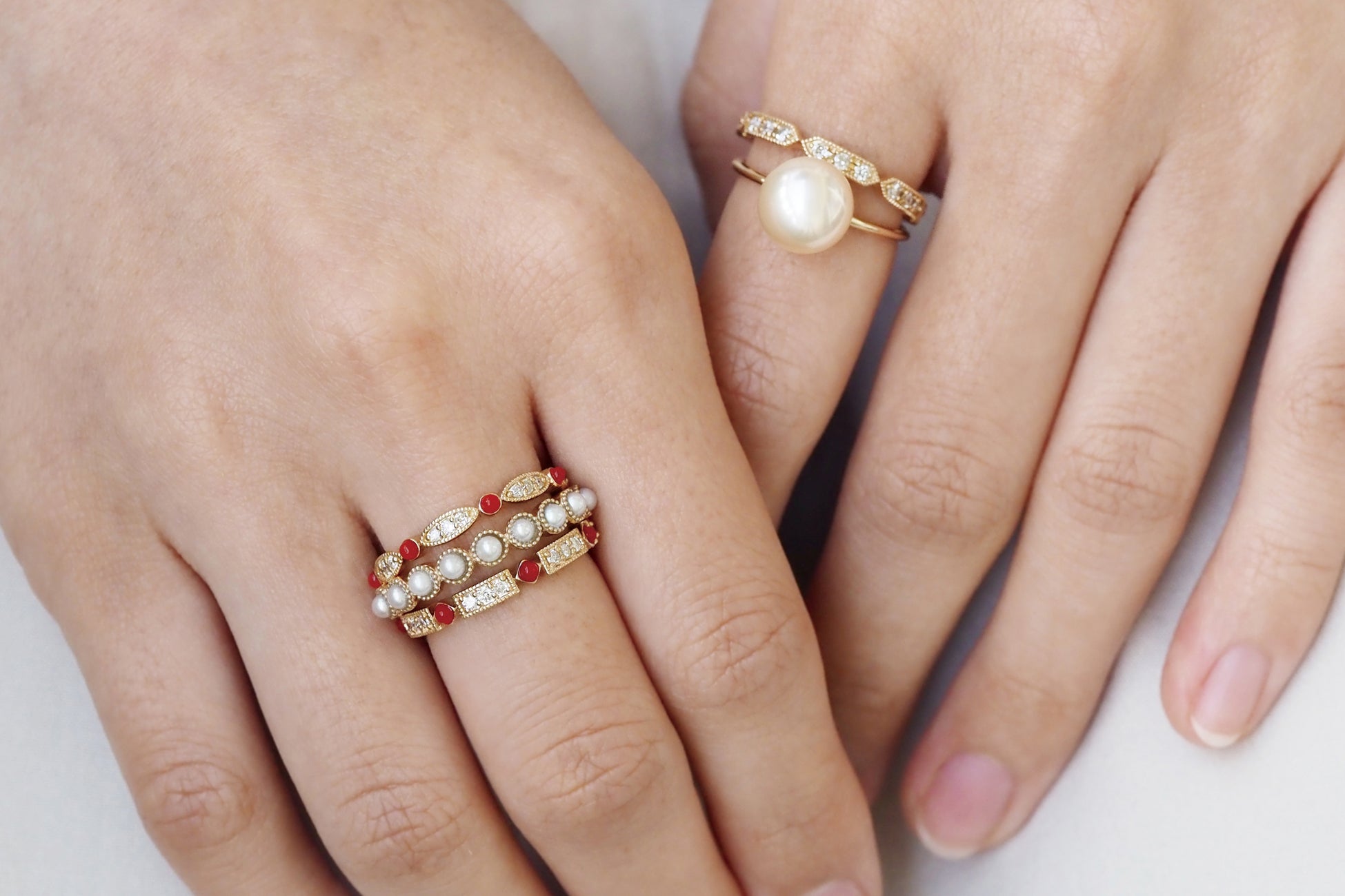 ミルシェノンのクラシカルなデザインと日本古来の宝石が織りなすジュエリーです。
