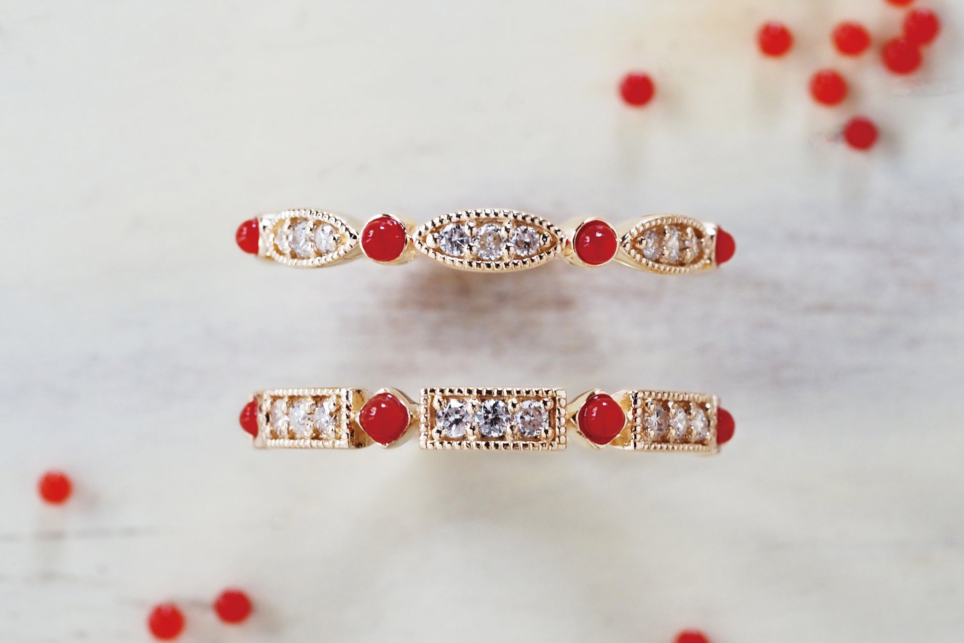 鮮やかで深みのある血赤珊瑚が装いを引き立て、素肌をより艶やかに魅せることでしょう。