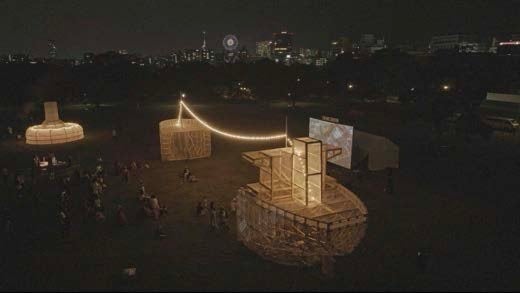 タンカーの中央では、栗林 隆と⽚岡真実(森美術館 館⻑)のトークイベントや、CINEMA CARAVAN代表·志津野 雷が世界を旅して切り取った記録を紡いだ映像作品《Play with the Earth》の上映と Play with the Earth Orchestra による⽣演奏が⾏われます(CINEMA CARAVANによるプログラム)。