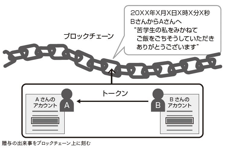 慶應義塾大学の荒谷大輔教授の最新の研究成果をもとに、従来の贈与経済(=贈与経済1.0)のデメリットをブロックチェーン技術を用いて解消し、束縛のないグローバルな贈与経済圏を実現するもの。
