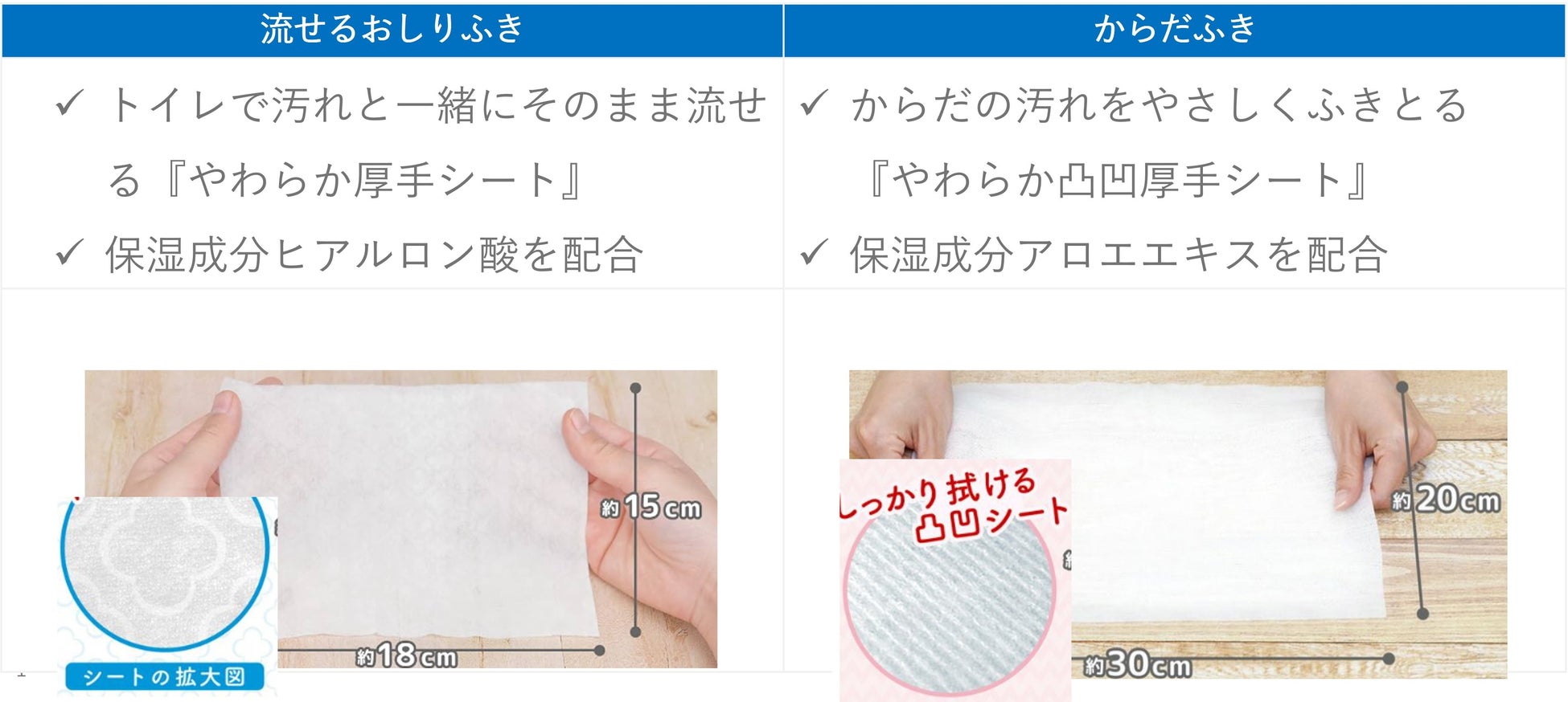 今回第1弾として、おしりふき・からだふき・手口ふきを発売いたします。