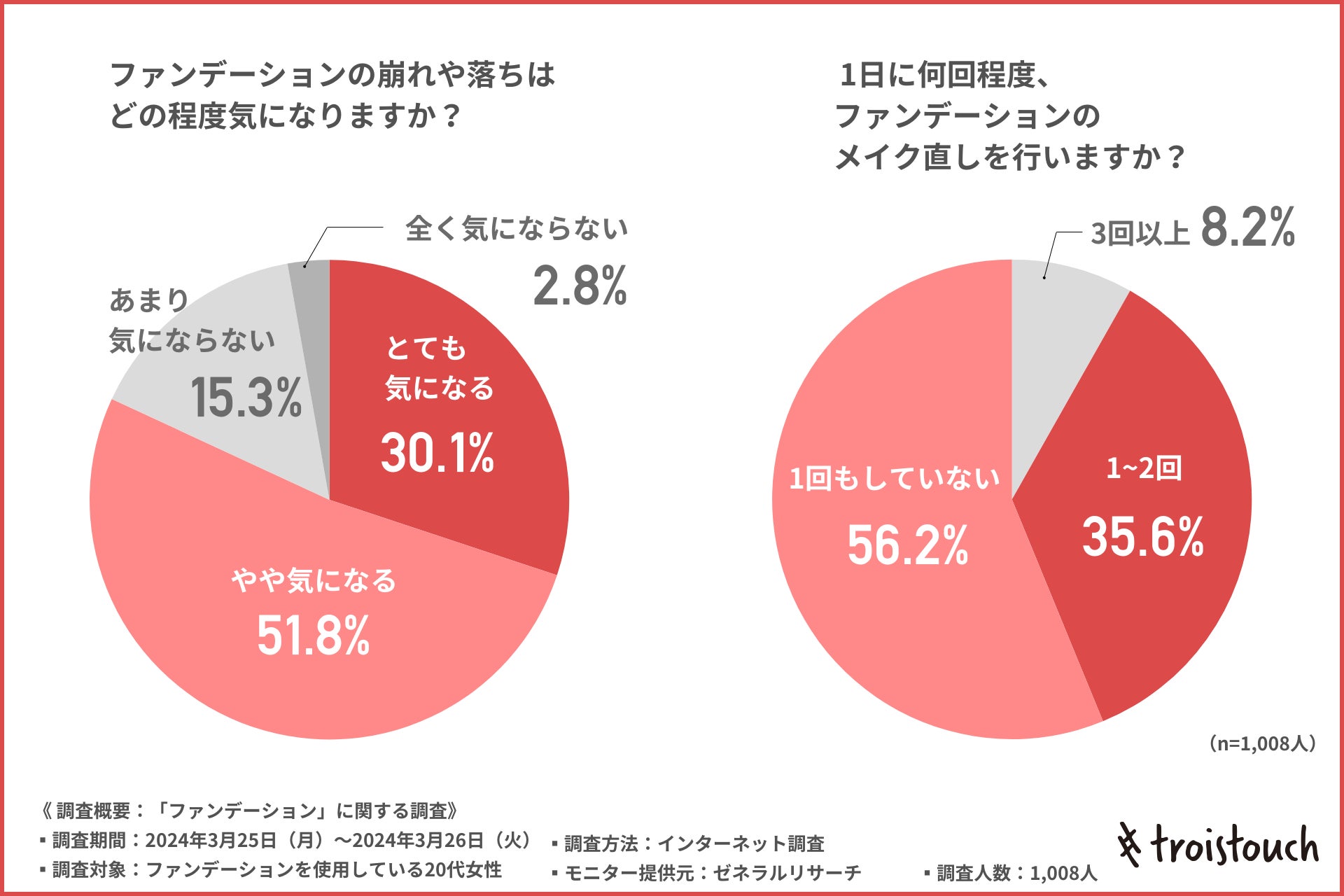 そこで今回、troistouch『ハートクッションファンデ』(https://troistouch.jp/prizloufist)を販売する株式会社LEFT-Uは、ファンデーションを使用している20代女性を対象に、「ファンデーション」に関する調査を実施しました。