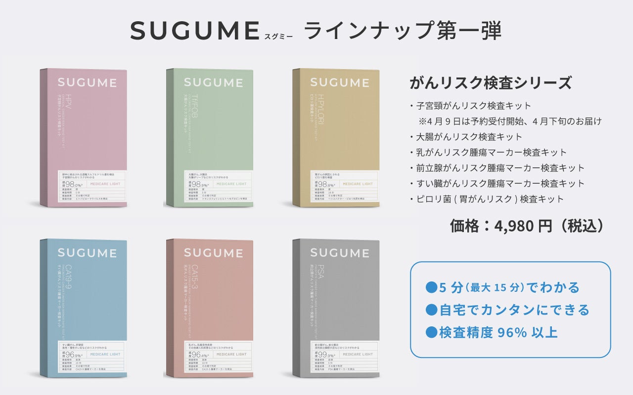 忙しいワタシの新健康ケア『SUGUME(スグミー)』誕生。がんリスクや糖尿病リスク等、 七大生活習慣病+αを自宅でチェック。4月9日「子宮の日」より販売開始!
