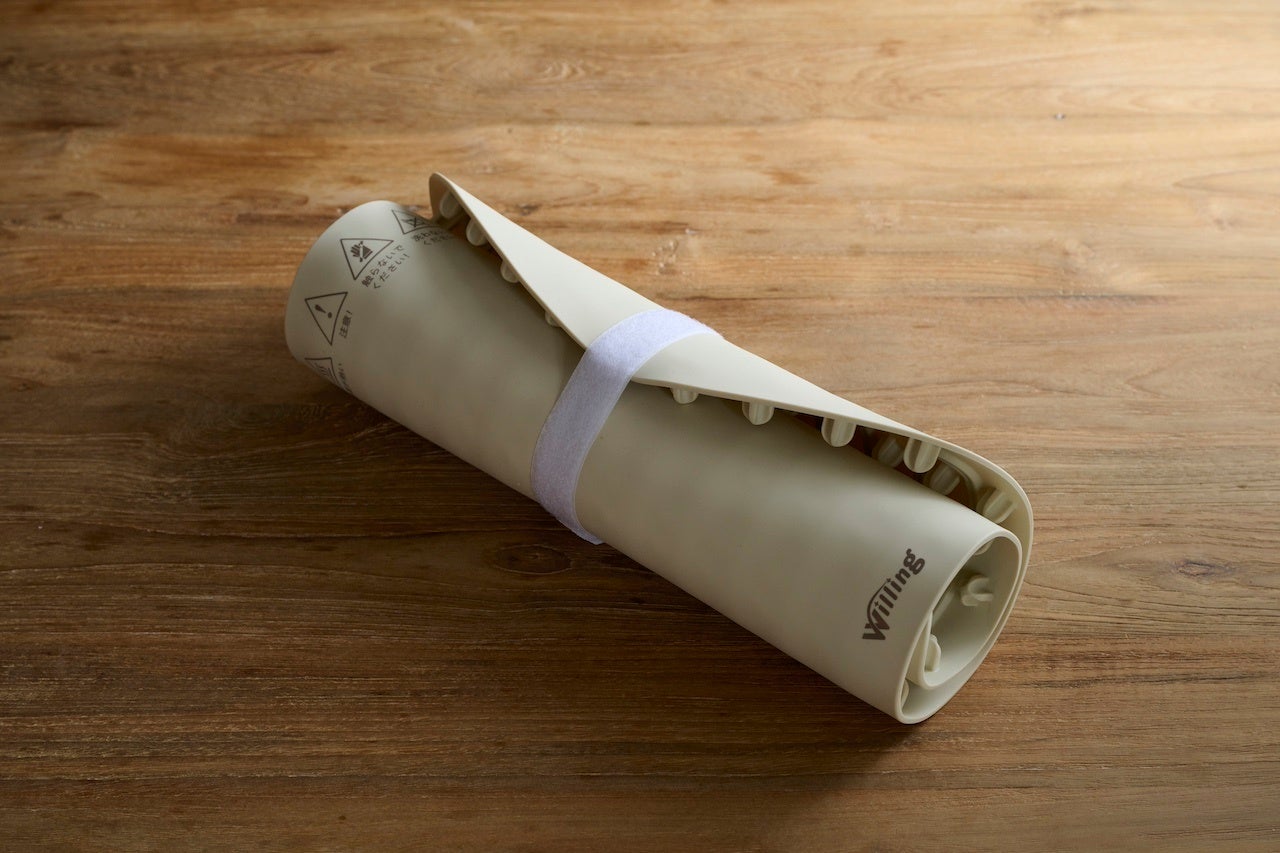 一見すると硬いボードの様に見えますが、シリコーンというしなやかな素材で使わない時はクルクル巻いてコンパクトになり