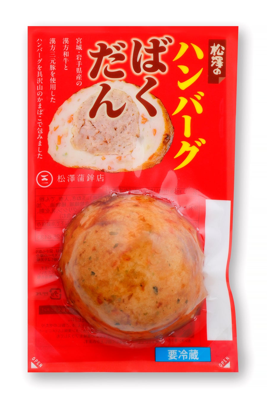 株式会社松澤蒲鉾店(本社:宮城県仙台市、代表取締役社長:田村伸一郎)は、2024年4月1日より『ハンバーグばくだん』を新発売いたしました。粗挽きのハンバーグをかまぼこのすり身で包んだ、新感覚のお惣菜揚げかまぼこです。仙台市内の直営4店舗や公式オンラインショップで1個398円(税込)で販売しております。