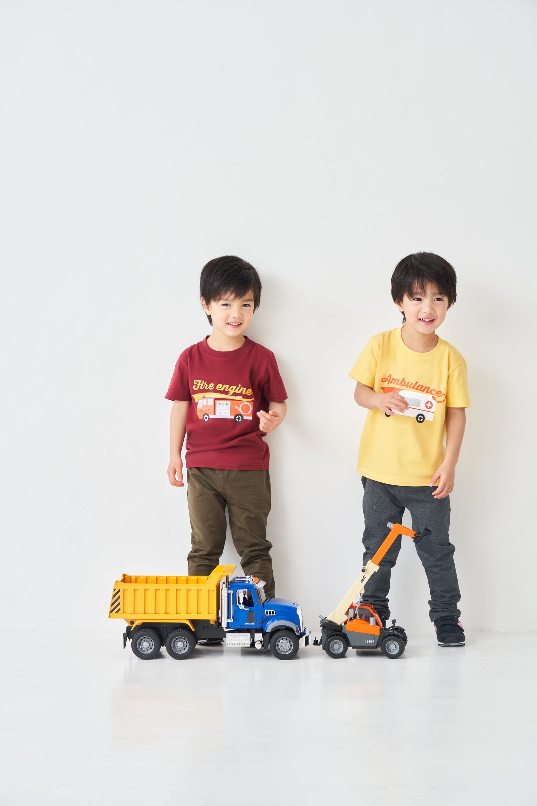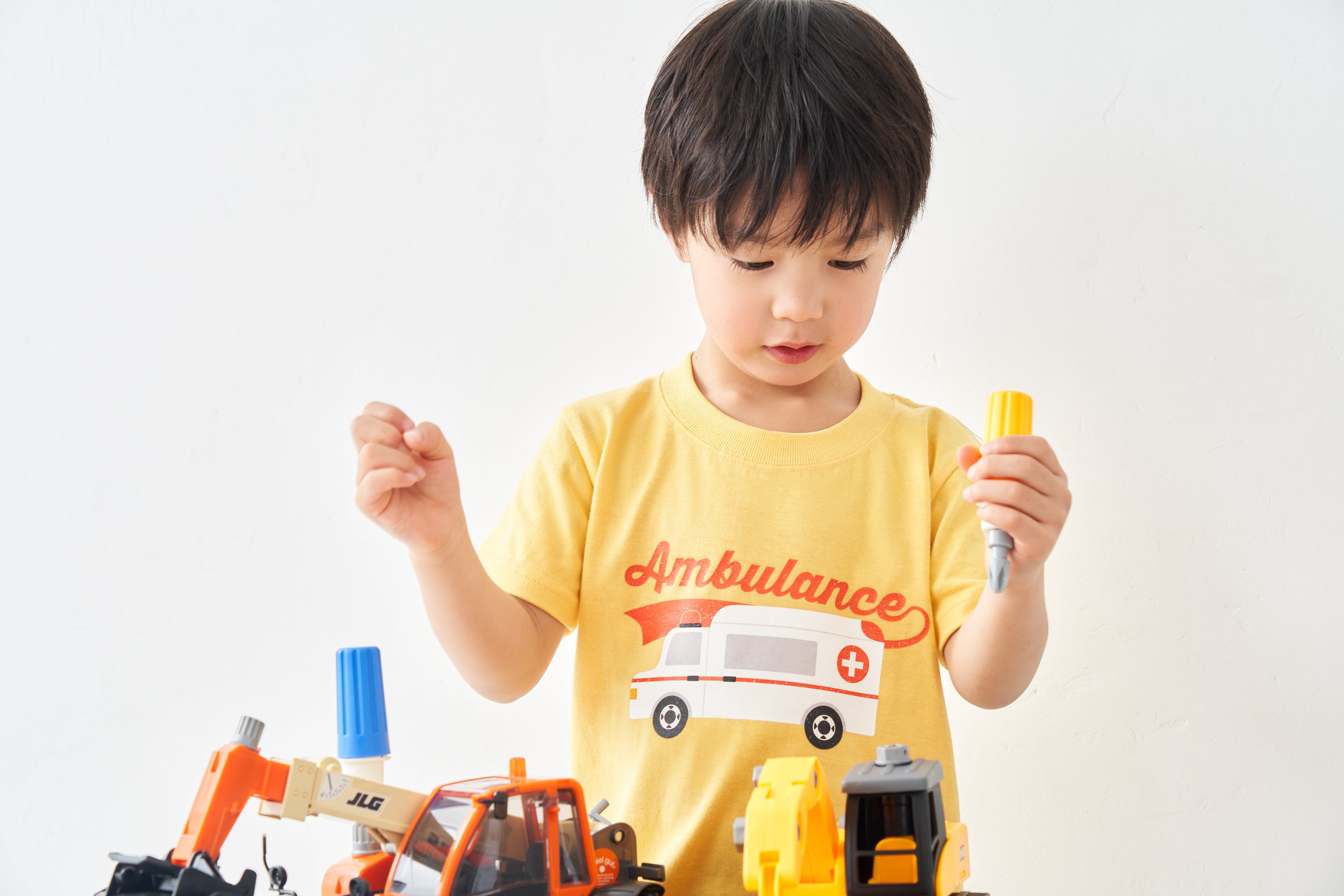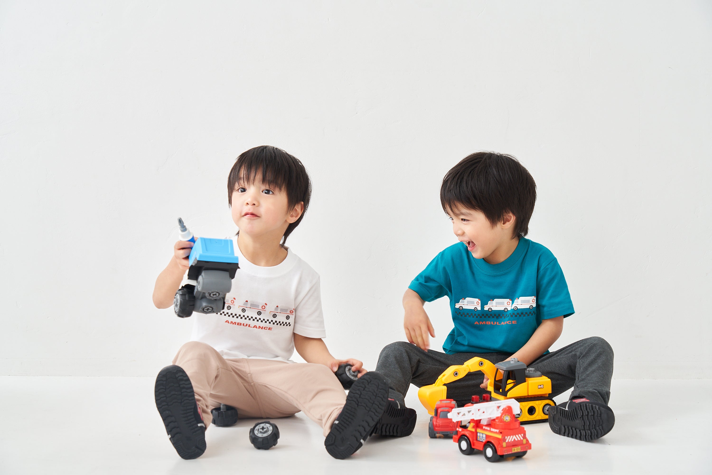 子どもたちに大人気のはたらく車。しかし、はたらく車がデザインされた洋服が日本であまり販売されていなかったこと、そして創業者の子ども達が救急車や清掃車(ゴミ収集車)の洋服を強く欲しがったことをきっかけに、立ち上げられました。
