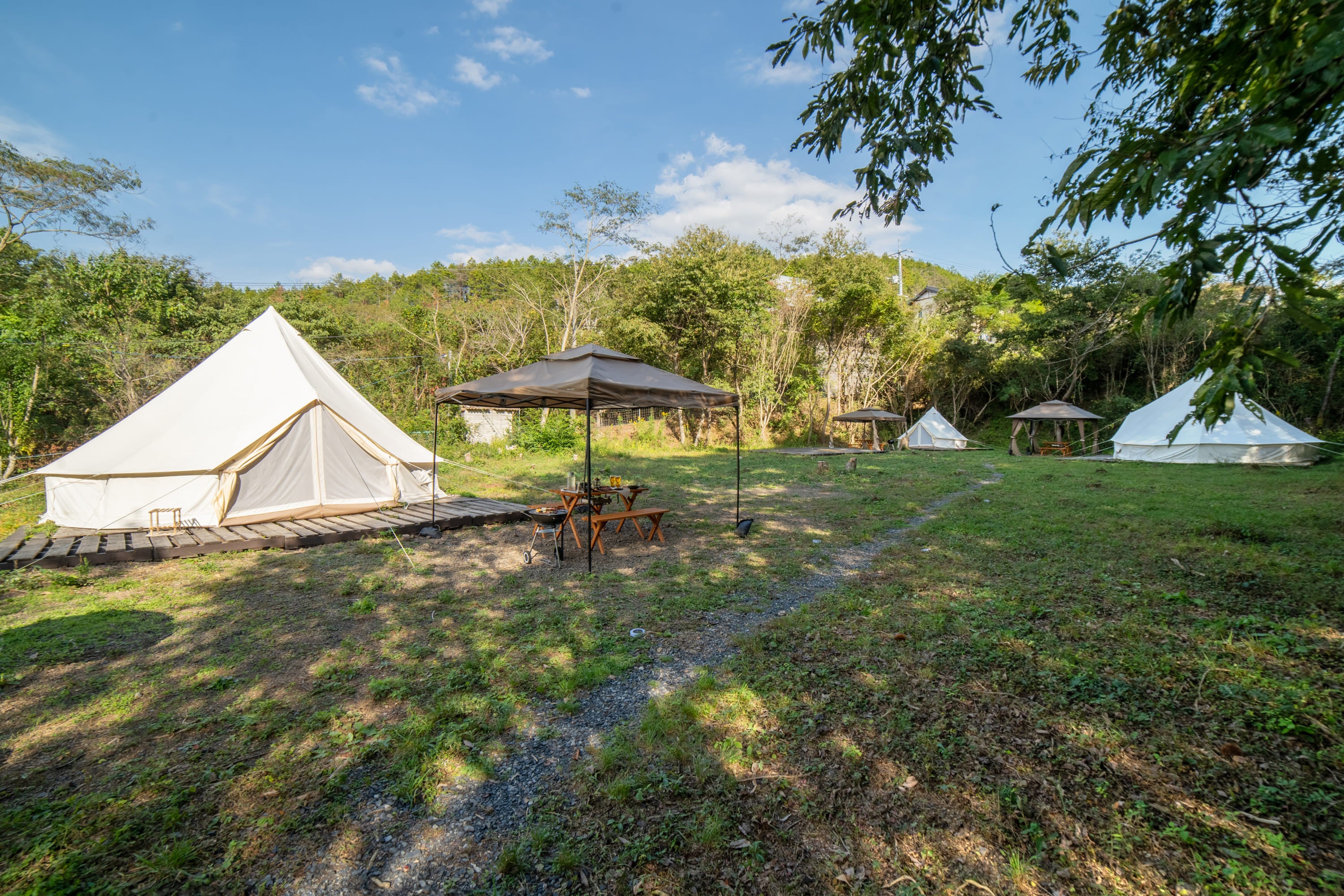 自然豊かな場所で、日常を忘れてゆったりとした時間を過ごせる場所を目指し、完全手作りで立ち上げました。Glamchette(グランシェット)という名称は、グランピング(glamping)と隠れ家(cachette)に由来する造語です。