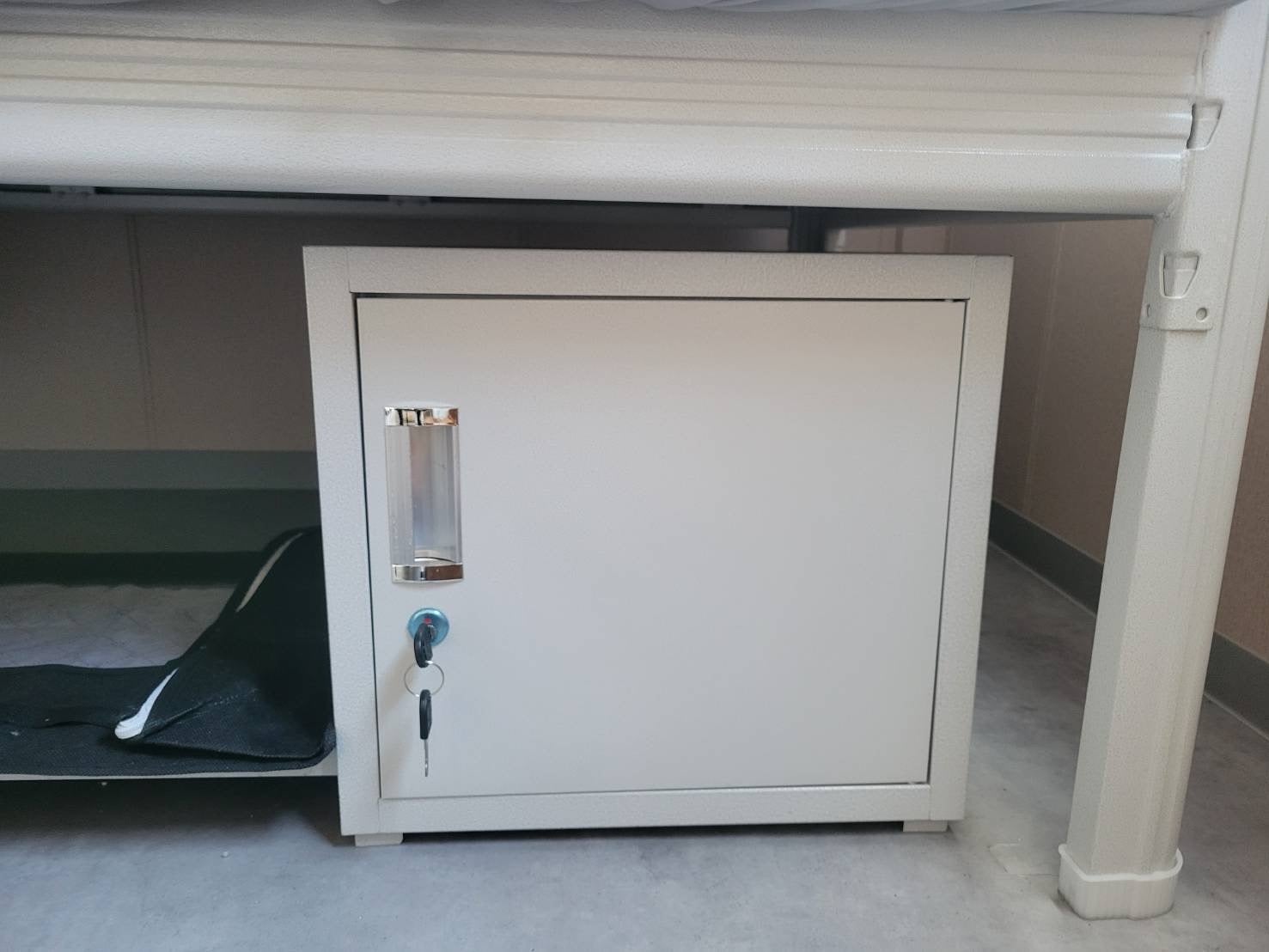 ベッドの下には鍵付き金庫が2個あり、セキュリティも安心。