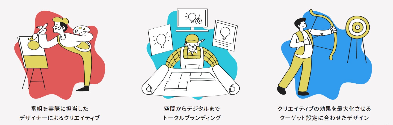 日テレの番組における美術制作で培ってきた、洗練されたデザインの力とスピード感、そして総合力を基盤に、テレビの美術制作のみならず、あらゆるクリエイティブ分野でその力を発揮しているクリエイティブ集団。