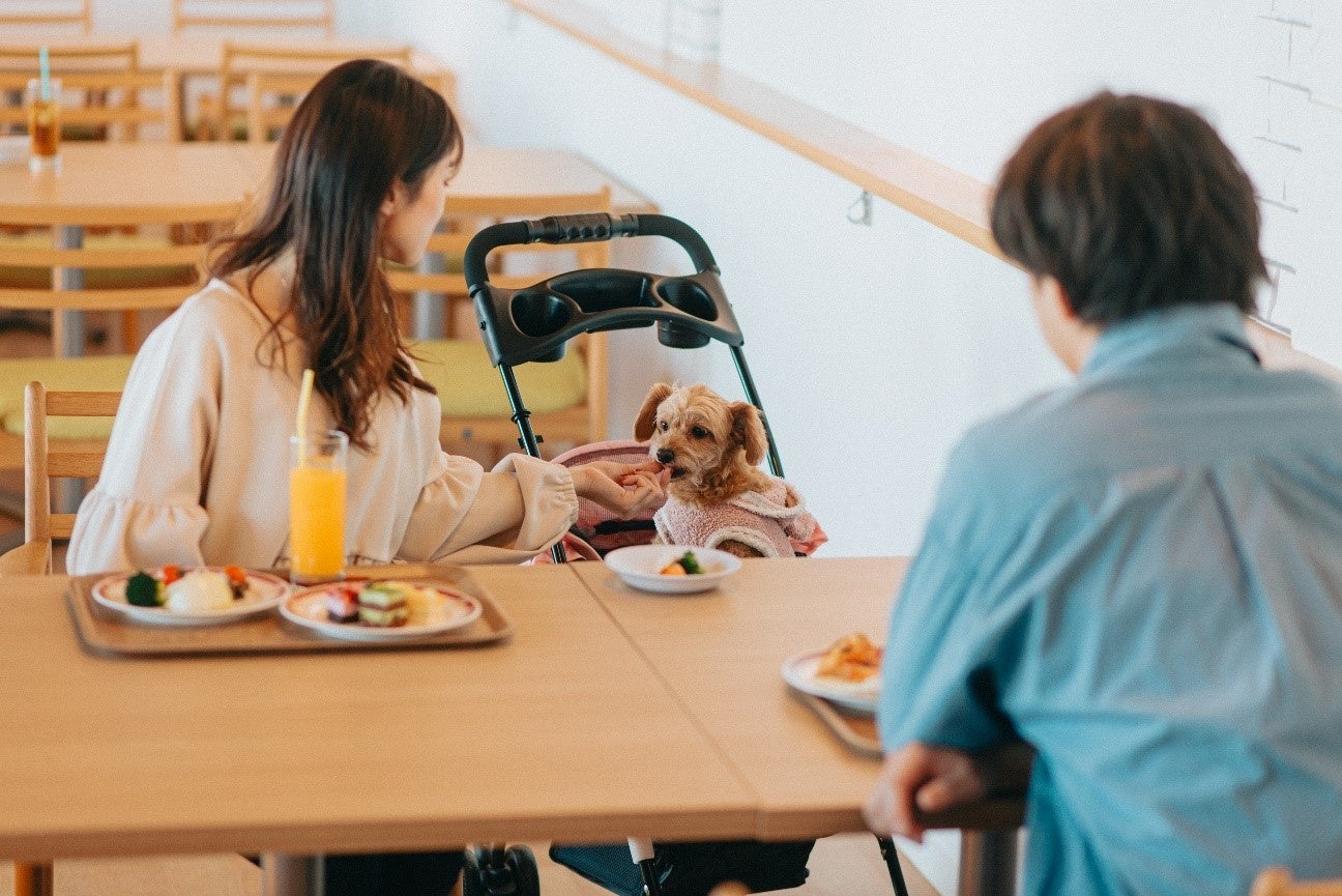 レストランではわんちゃん用カートの貸し出しを行い、隣同士のわんちゃんが喧嘩しない様、配慮した造りになっております。ご夕食・ご朝食も愛犬と一緒にご飯を食べたり、穏やかな時間を過ごすことができます。