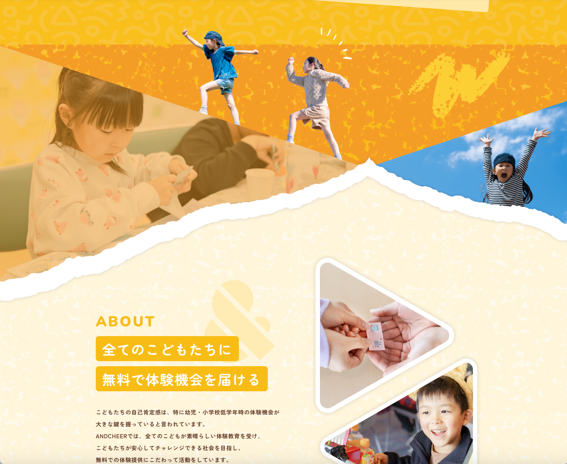 ANDCHEERはこどもの自己肯定感を育む無料の体験プログラムです。自然・文化・社会体験・お仕事体験などの体験イベントを全国で実施することで、すべてのこどもが成長するきっかけを届けています。