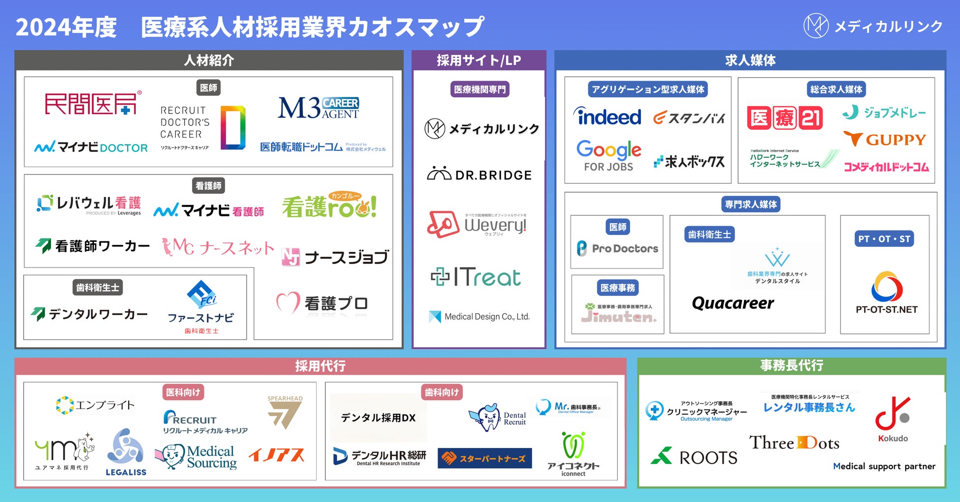 医療機関向け採用サイト制作による採用支援事業を展開する株式会社メディカルリンク(本社:東京都千代田区 、以下 メディカルリンク)は、独自の調査により医療系の人材採用に関連するサービス・ツールをまとめた「2024年度 医療系人材採用 業界カオスマップ」を公開いたします。