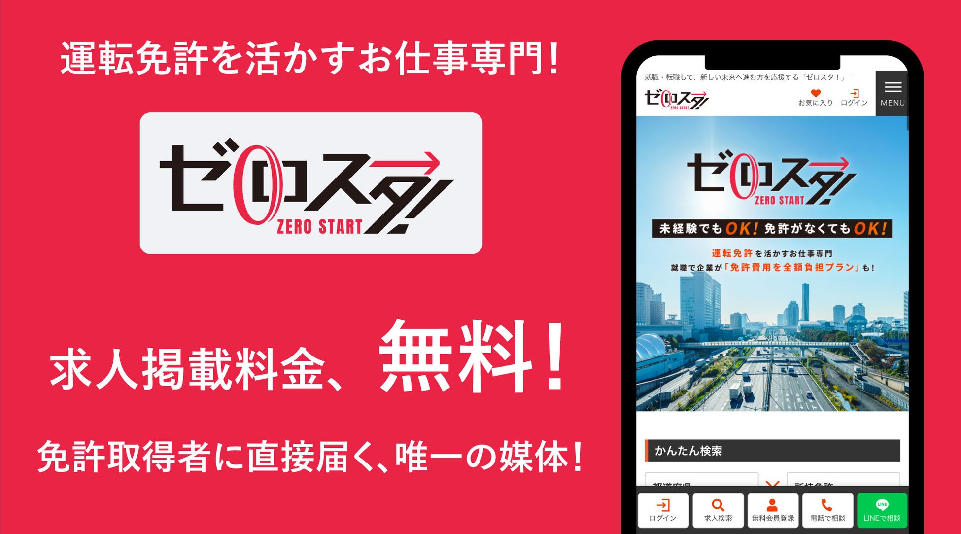 運転免許を活かすお仕事専門 ドライバー人材紹介サービス「ゼロスタ!」求人掲載企業の募集を開始