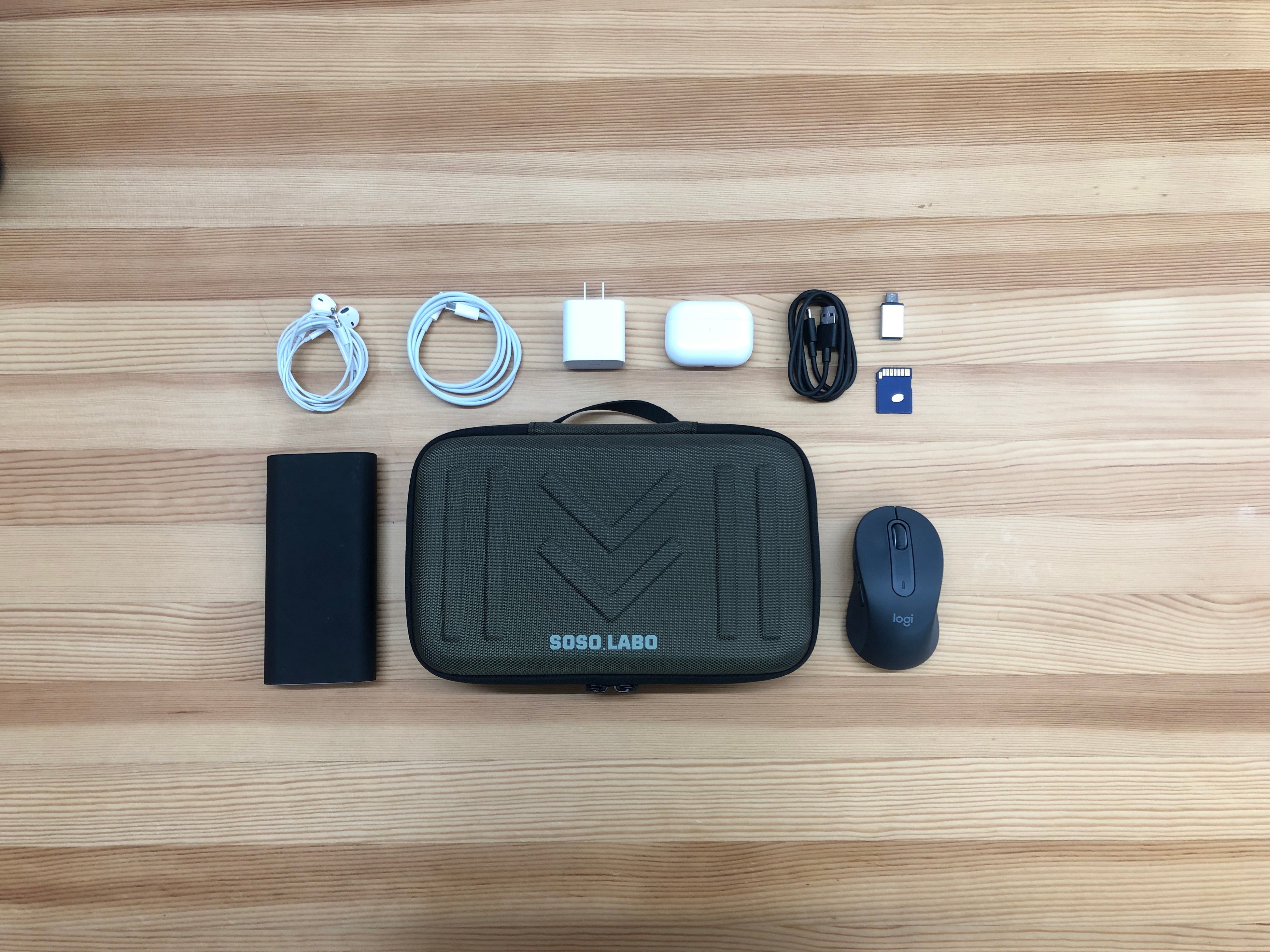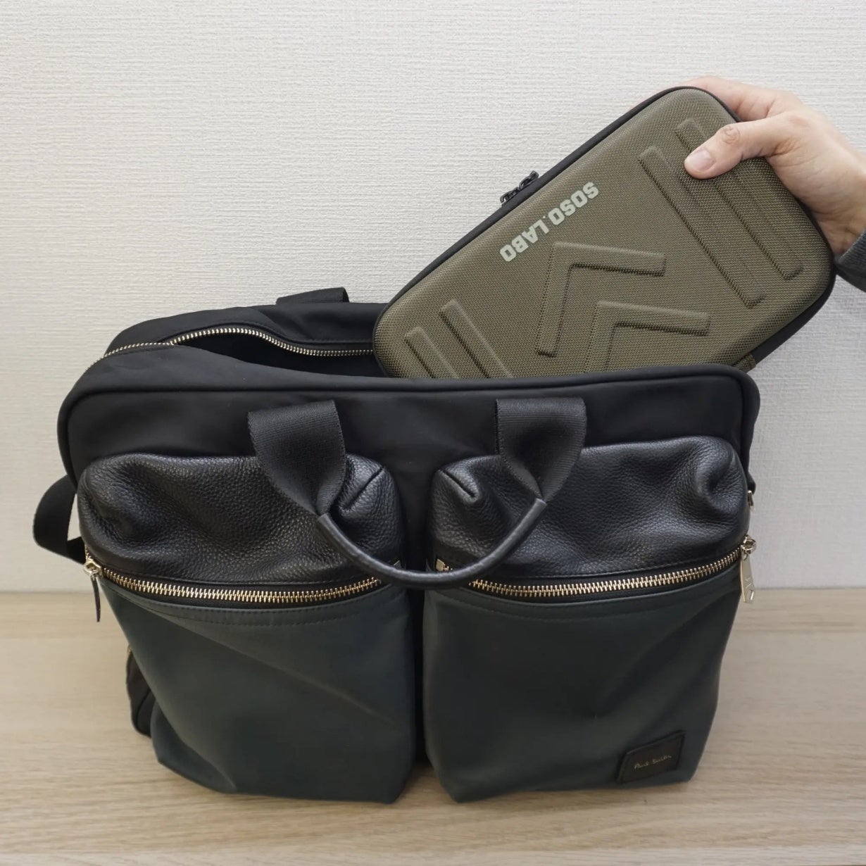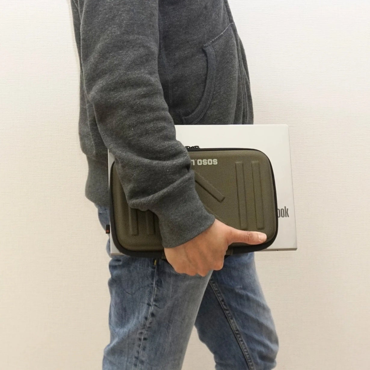 持ち手が付いているのでそのままケースだけの持ち運びもOK!バックパックやビジネスバックにも収納できるちょうど良いサイズなので通勤や出張、旅行などにも最適です。