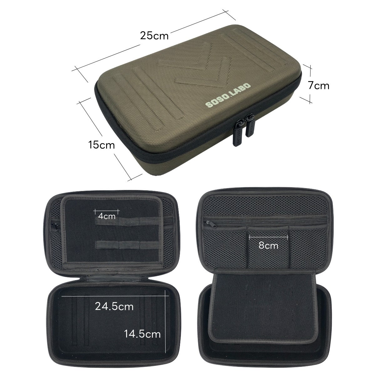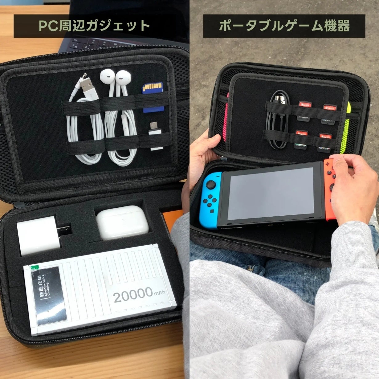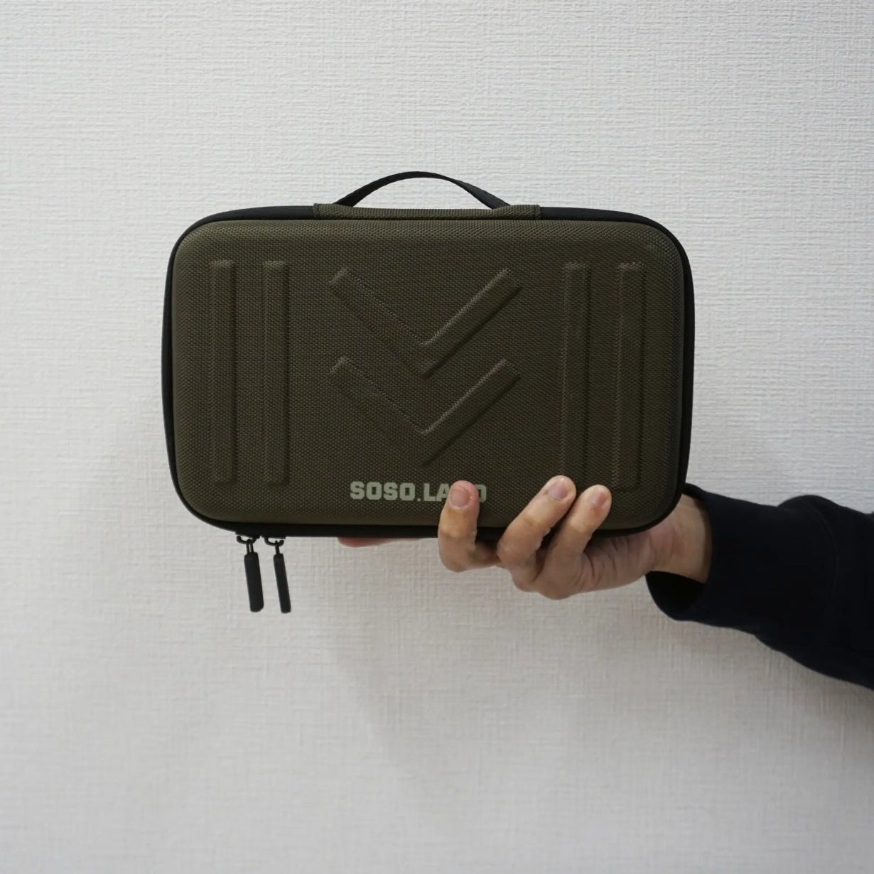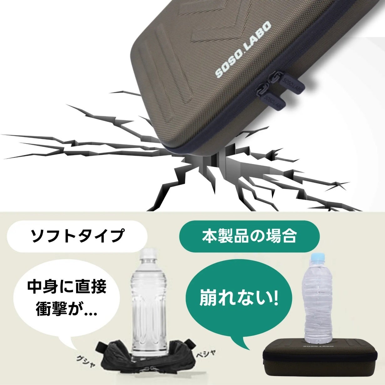 EVA素材で作った強度を持つセミハードタイプなので、落下や外部からの衝撃に強く大切なものをしっかり保護します。