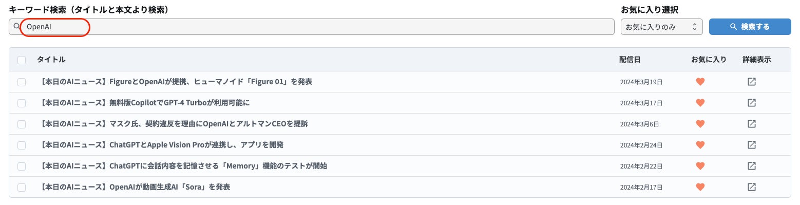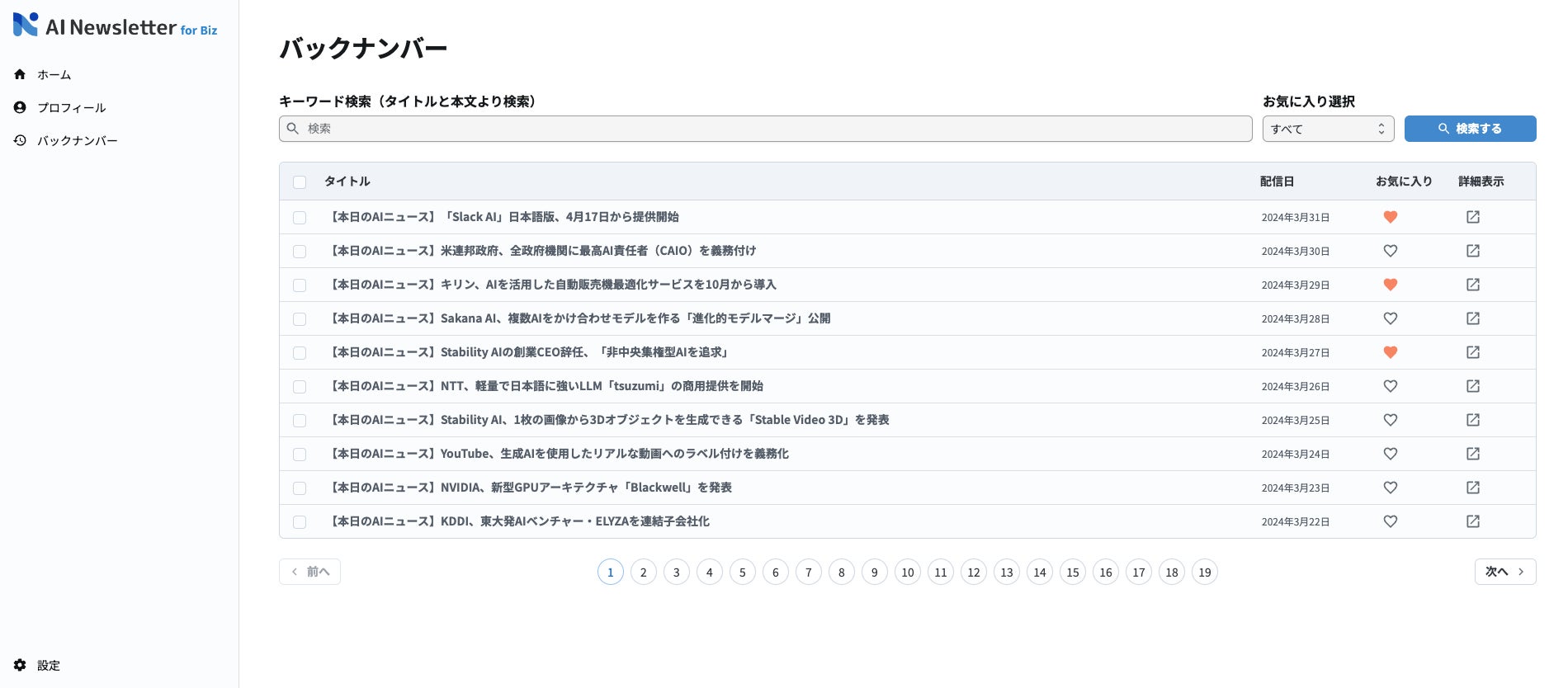 機能①:配信されたニュースのデータ蓄積【バックナンバー機能】