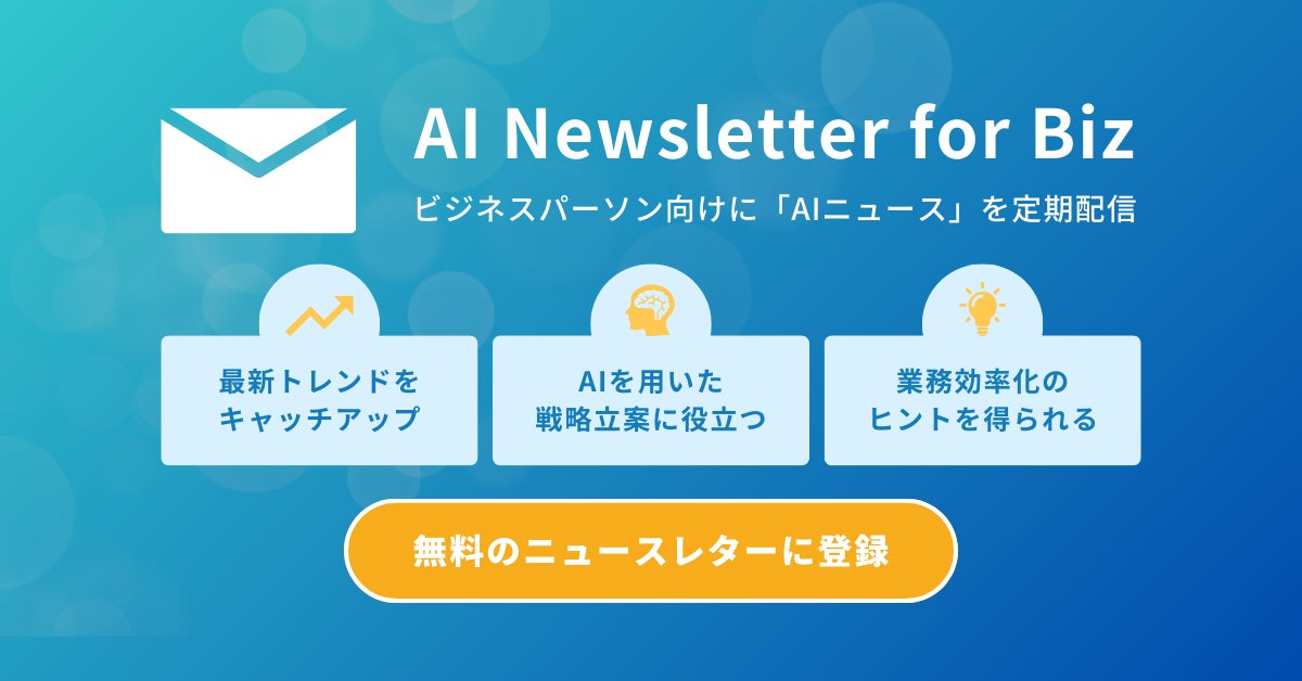 AI Newsletter for Bizとは、ビジネスパーソン向けに「AIニュース」を定期配信するサービスです。
