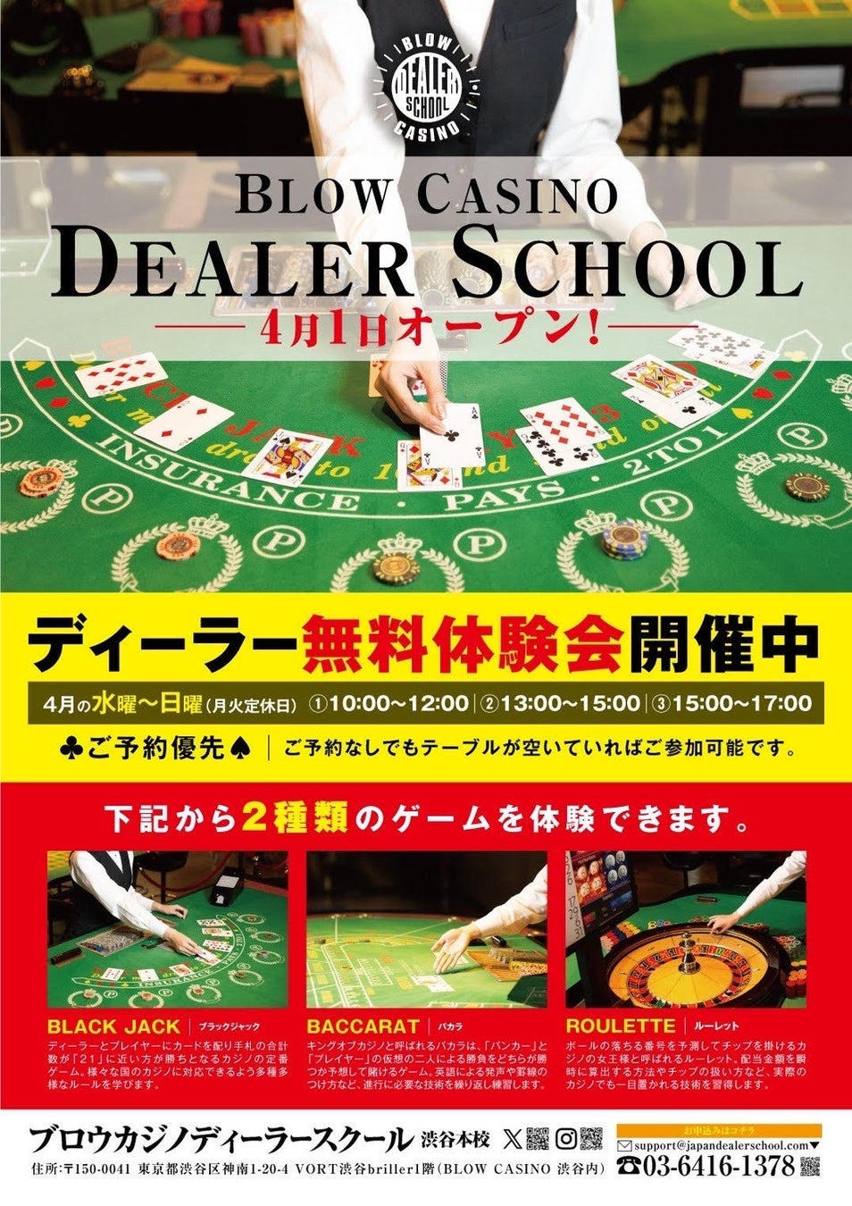 2030年に日本でカジノ解禁!? カジノディーラーを育成する『ブロウカジノディーラースクール』が 東京渋谷にて、4月1日(月)オープン!
