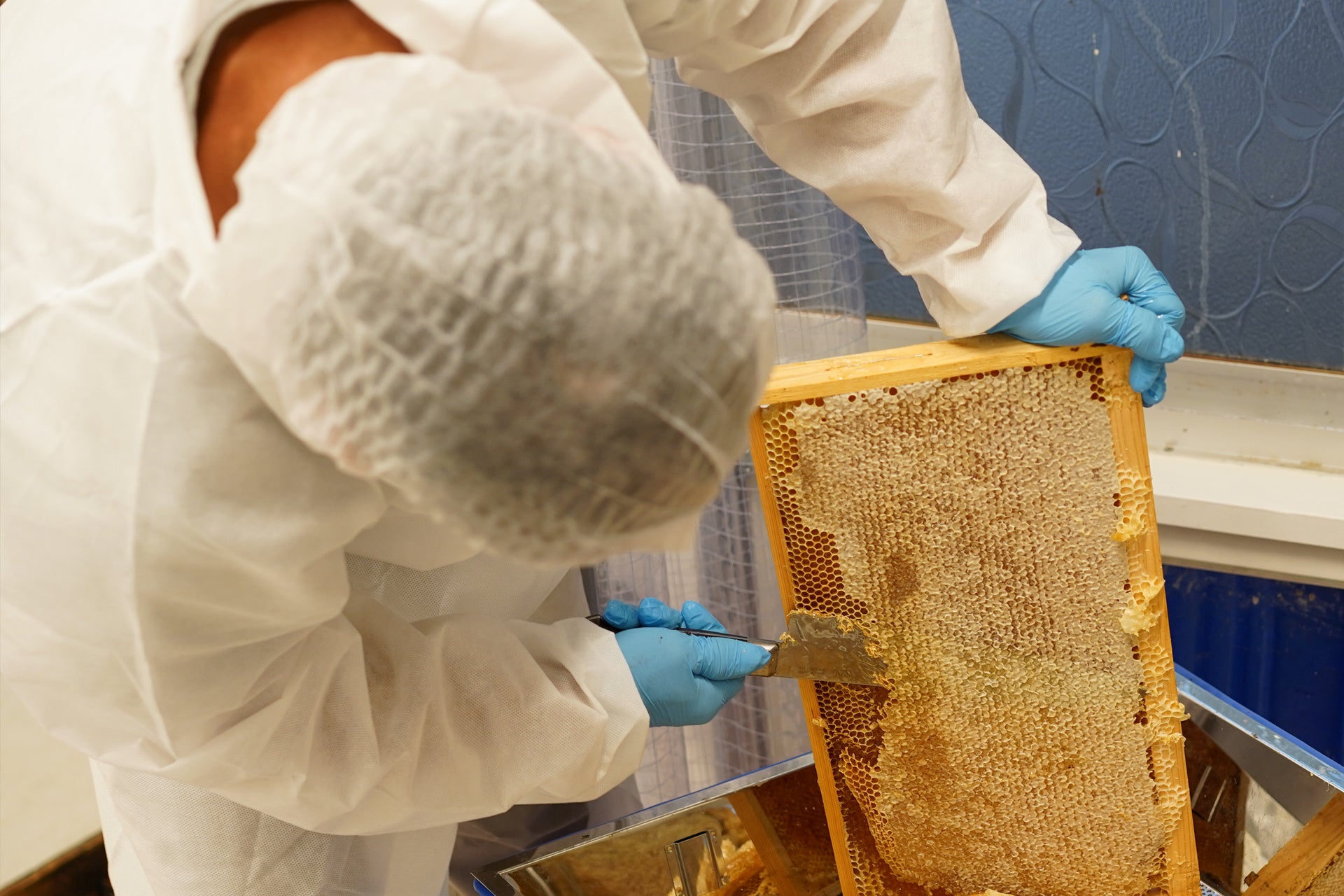 蜂にストレスを与えず高品質な蜂蜜をお届けするため素手で巣枠を精密調整