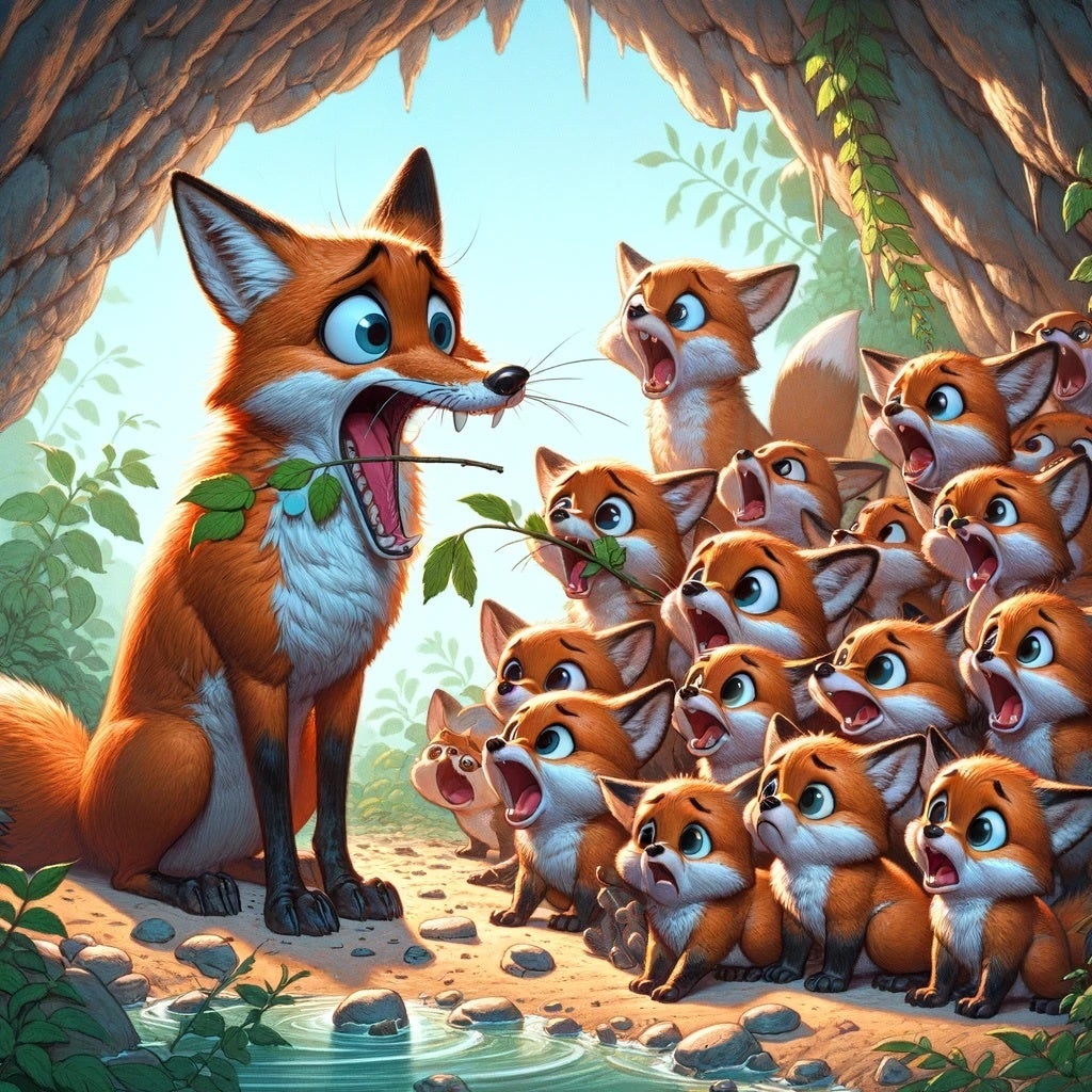 お母さんギツネはお父さんギツネに食べ物を探してきて欲しいとお願いしました。