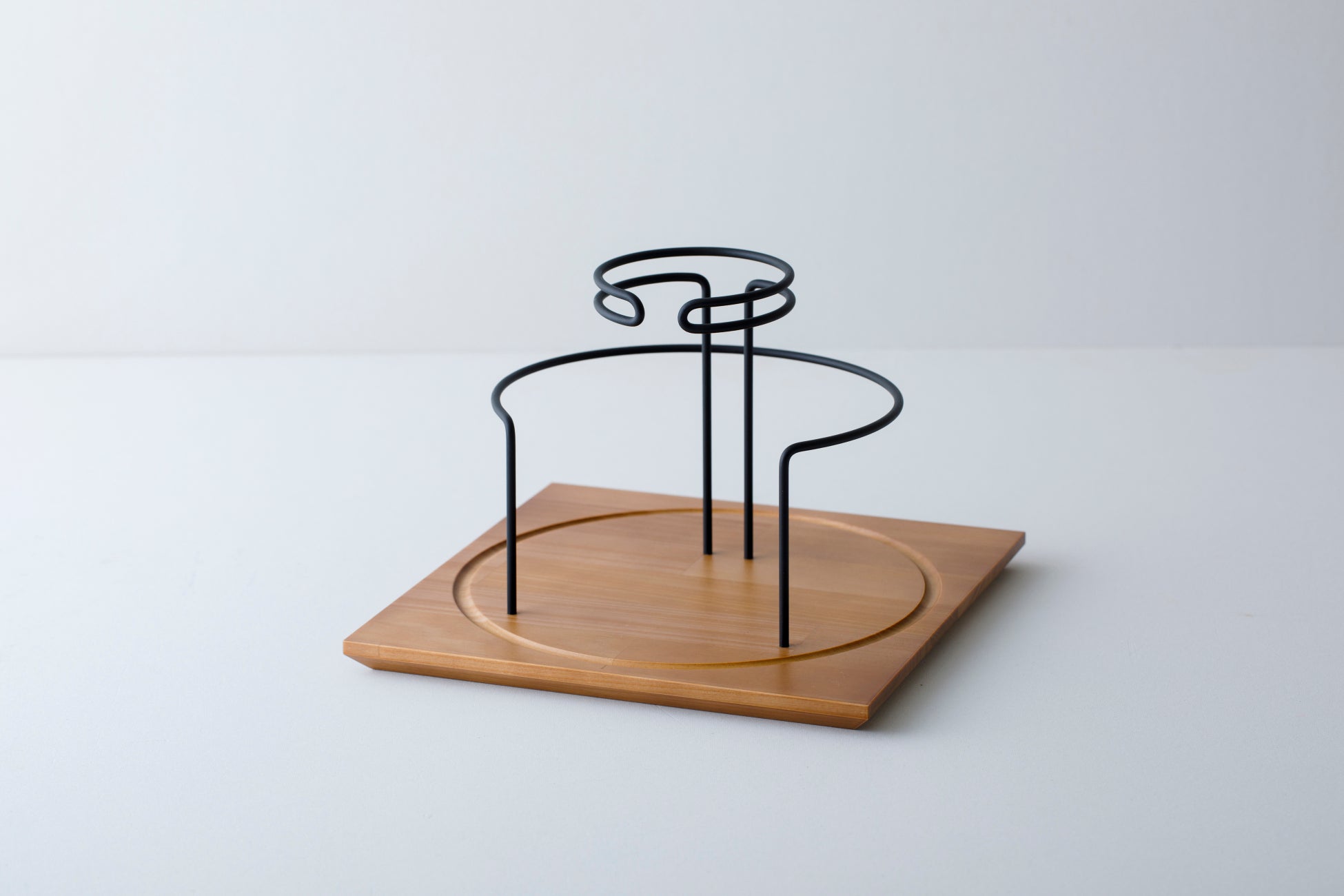 鉄製の線材部分と木製プレート部分は、共に燕三条の職人による曲げ加工や削り加工で製造。鉄線材には錆や水滴に強い粉体塗装を、木製プレートには水分に強いウレタン塗装を施すことで、汚れてもさっと拭き取ることが出来ます。