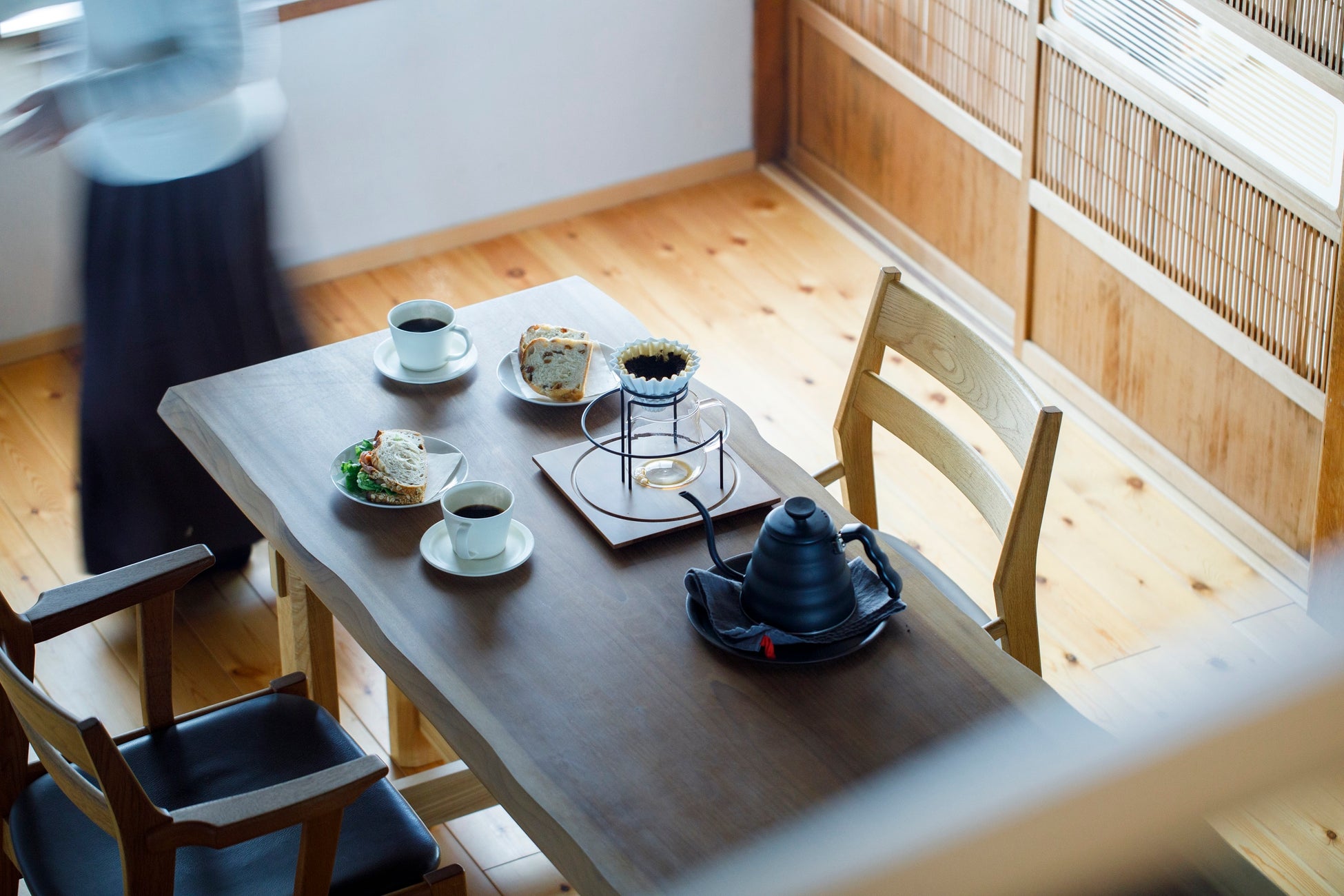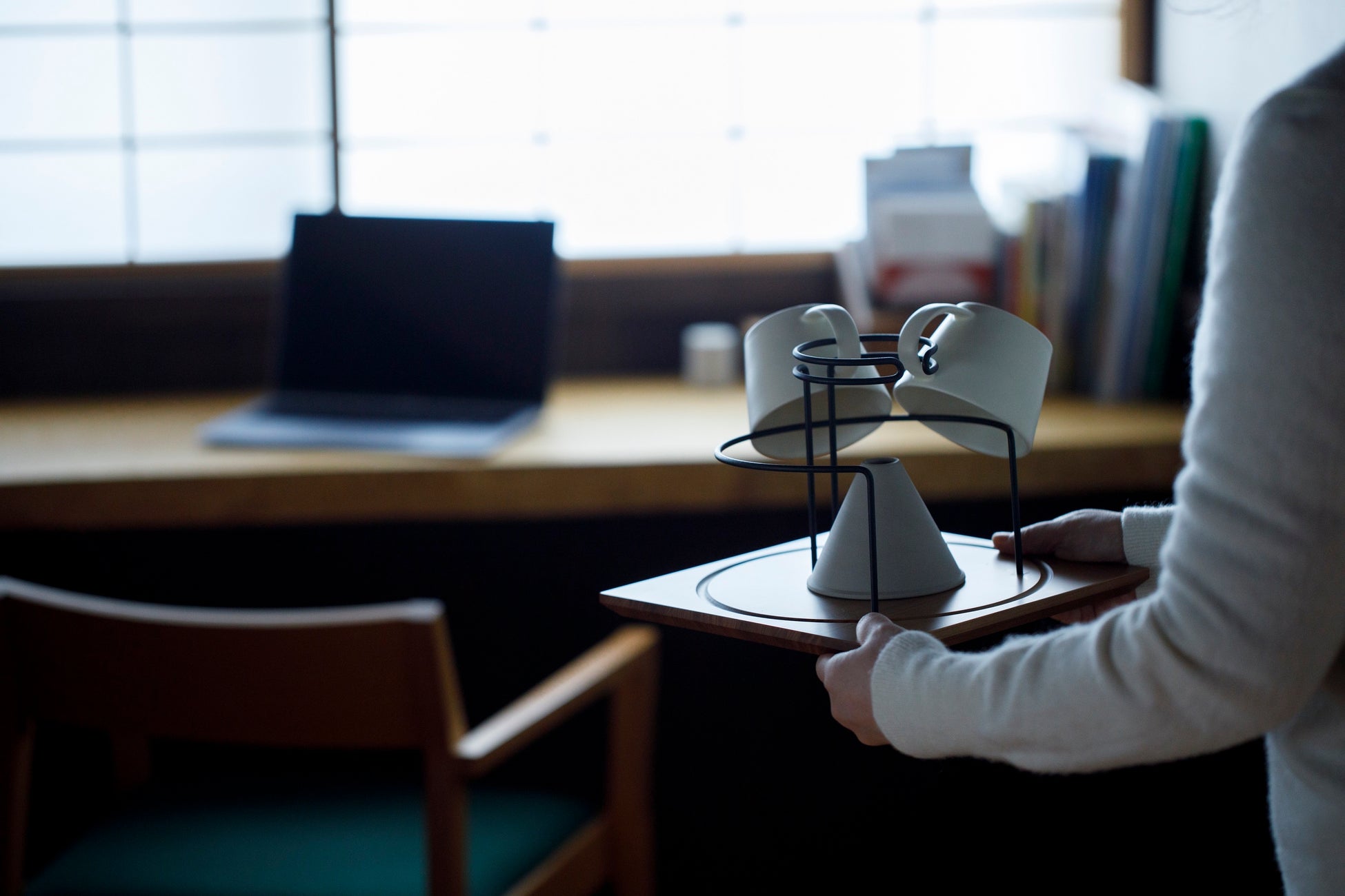 コーヒー関連のツールとマグカップなどをまとめて置いておくことで、ドリップまでの動作をコンパクトにする事が出来ます。リビングのサイドテーブルやリモートワークのデスク、べランピングやガレージでのBBQなど、お気に入りの空間でのコーヒーブレイクに寄りそうプロダクトです。