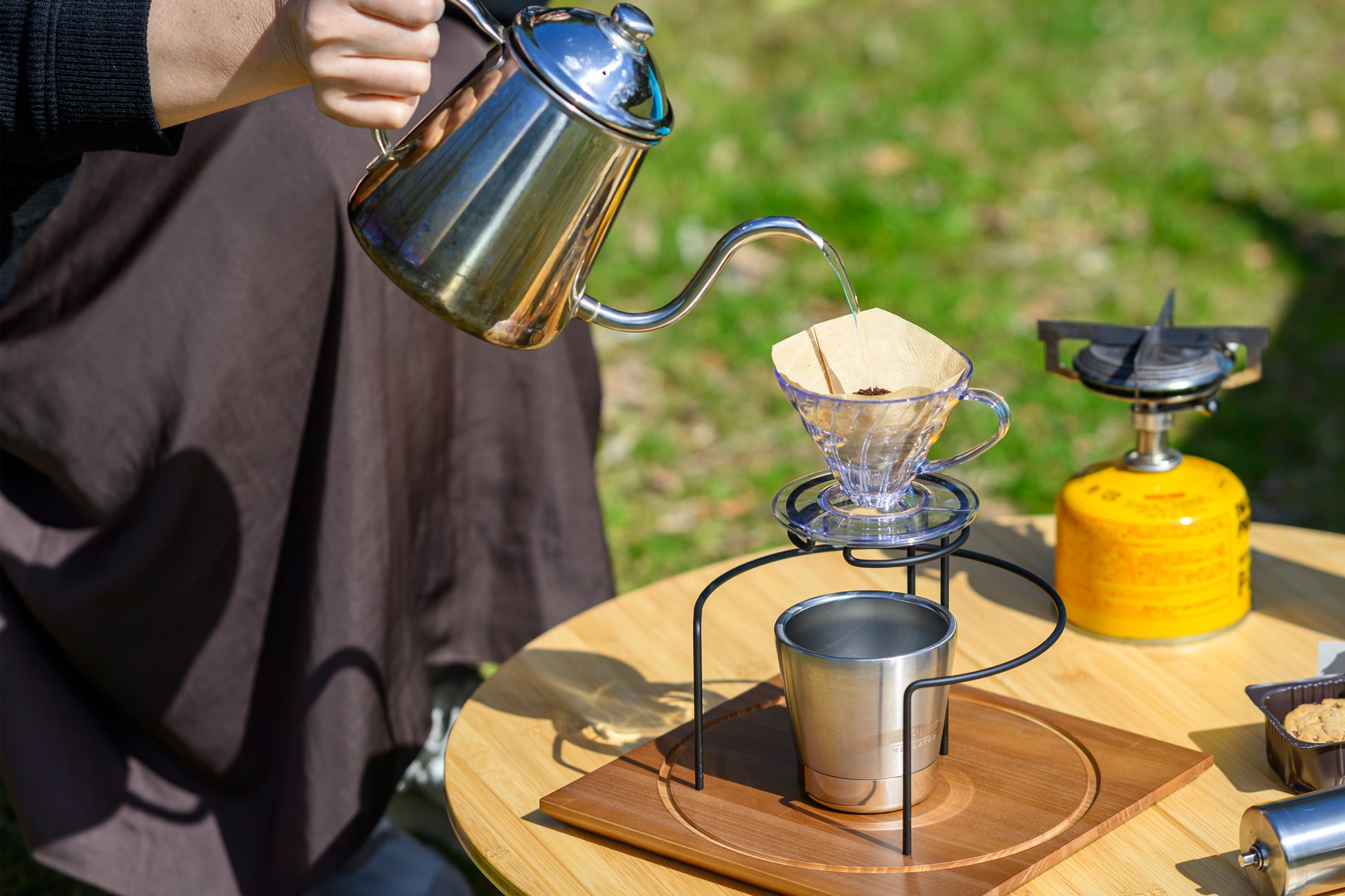 ドリッパースタンドでの使用時は、中央のリングにドリッパーを、下にマグカップをセットするだけ。容量450ml~500ml程度の小型のコーヒーサーバーも使用可能です。