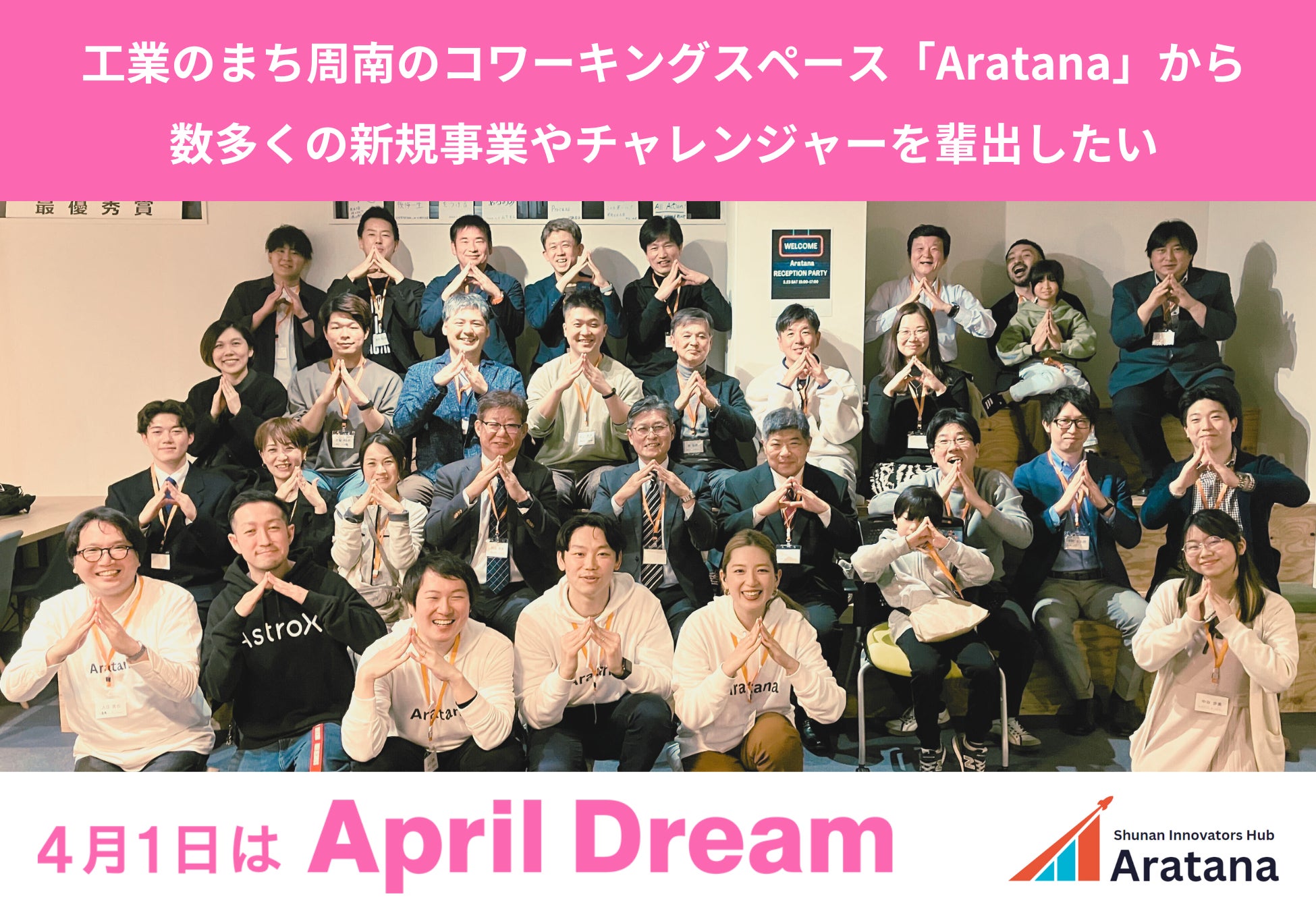 株式会社Aratana(山口県周南市、代表取締役:吉本龍太郎)は、4月1日を夢を発信する日にしようとするApril Dreamに賛同しています。 このプレスリリースは「Shunan Innovators Hub Aratana(以下、Aratana)」の夢です。
