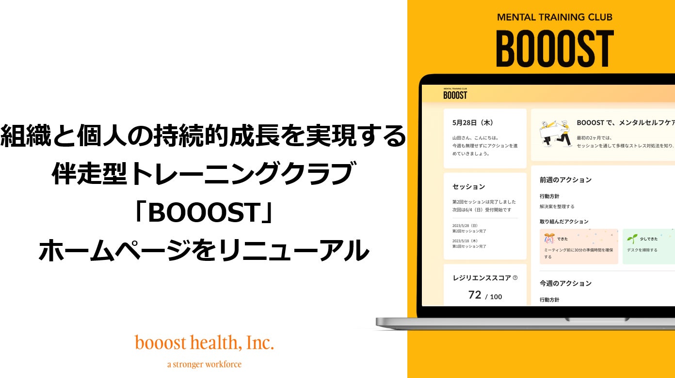このたび組織と個人の持続的成長を実現する伴走型トレーニングクラブ「BOOOST」を提供するbooost health株式会社(東京都中央区、代表取締役CEO・創業者:芳賀彩花)はホームページをリニューアルしたことをお知らせします。「BOOOST」を通して社員一人ひとりの成長とケアに伴走するデジタルパーソナルコーチとして、企業の継続的な成長をお手伝いします。今後さらに、人的資本投資のあたらしいかたちを提供していきます。