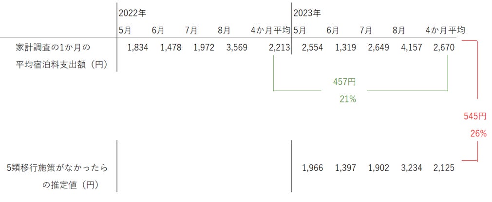 新型コロナ5類移行によって、家計の宿泊料支出は26%増加