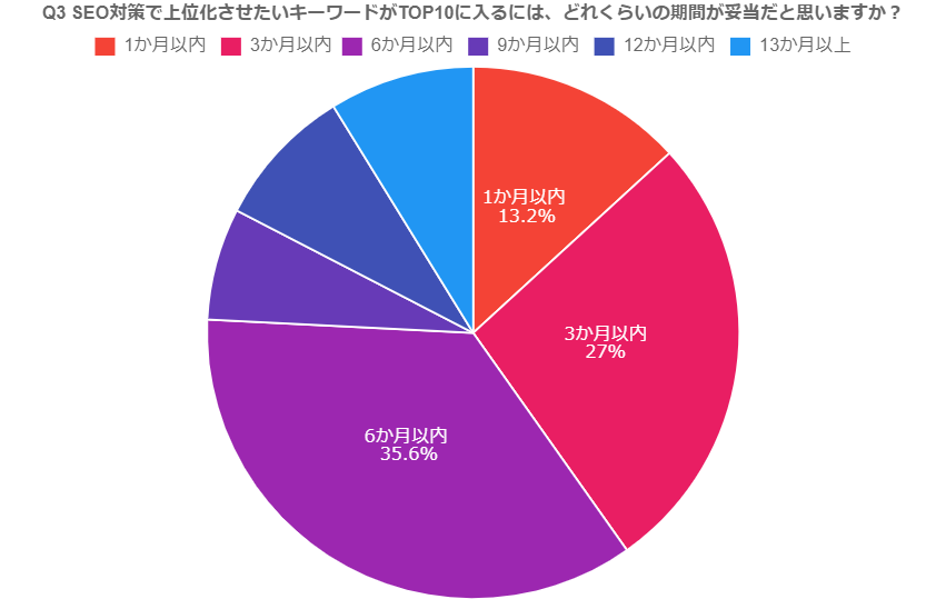 調査結果③ SEO対策で上位化させたいキーワードがTOP10に入るには、どれくらいの期間が妥当だと思いますか?