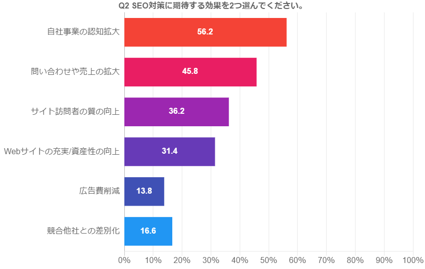 調査結果② SEO対策に期待する効果を2つ選んでください。