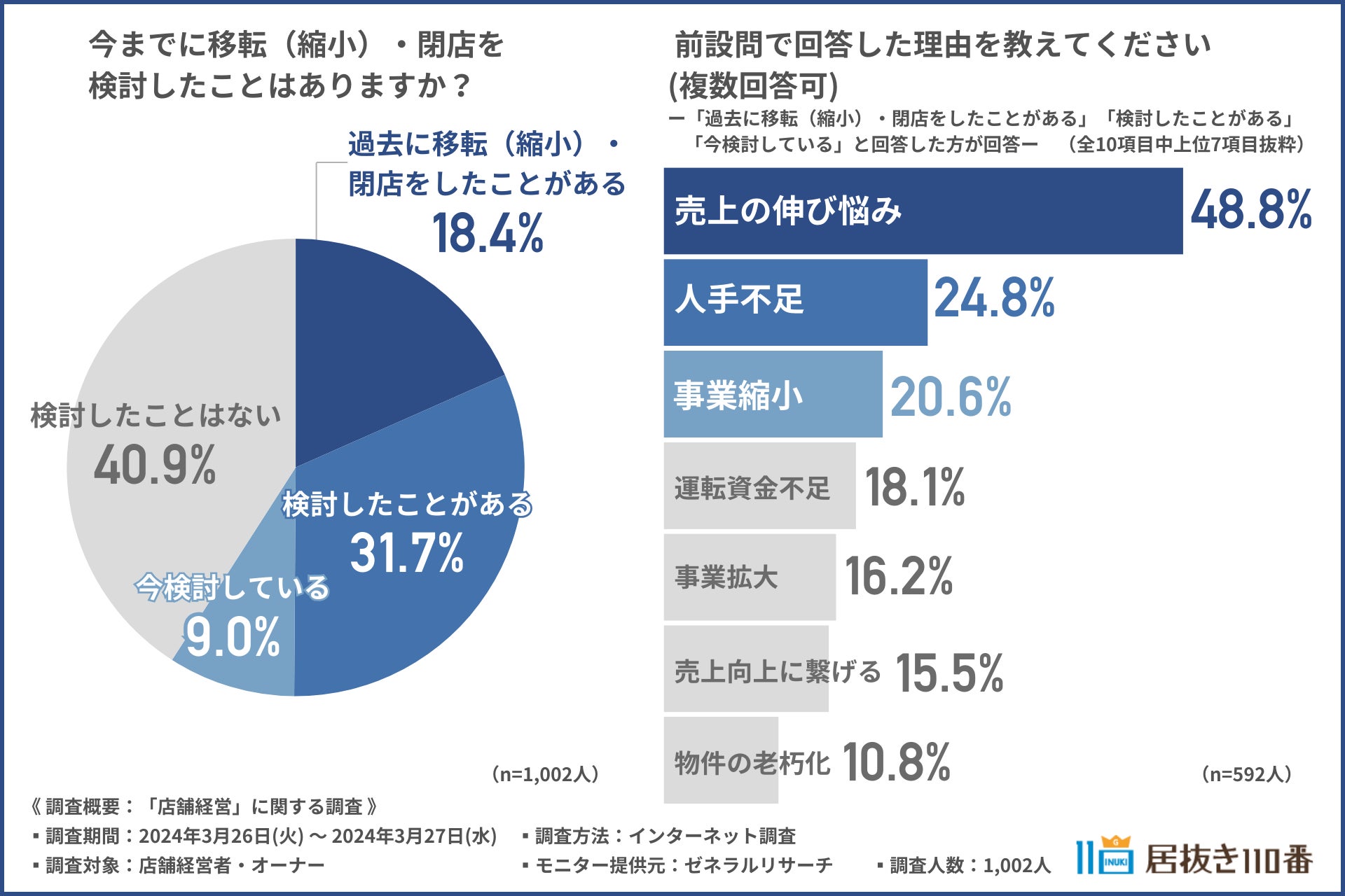 店舗経営者・オーナーの約6割が過去に移転(縮小)・閉店を検討したことがある