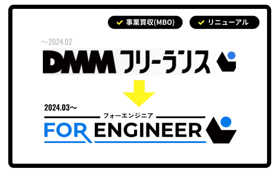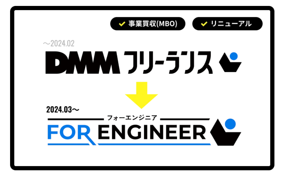 株式会社インフラトップは2018年11月にDMM.comのグループに加わり、その後DMM WEBCAMPとマケキャンby DMM.comにおいて当該マーケットのトップシェアとなりました。そして、2023年より新規事業として開始されたDMMフリーランス事業は順調に成長をしており、さらなる事業成長に向けてスピーディーな意思決定、リソースの投下が必要とされる状況です。熟慮を重ねた結果、株式会社インフラトップの創業者であり代表取締役の大島礼頌と取締役の永谷圭汰が事業MBOを実施いたしました。なお、4月より『DMMフリーランス』は名称を『フォーエンジニア』に変更いたします。このたびのMBOにより成長戦略をさらに強化していきます。本事業MBOは、フリーランスエンジニアへの還元率を高める為の手段であると考えております。そしてエンジニアに対してキャリアの選択肢を提示し続けることによって、多様な働き方やキャリアのステップアップのサポートができればと思います。