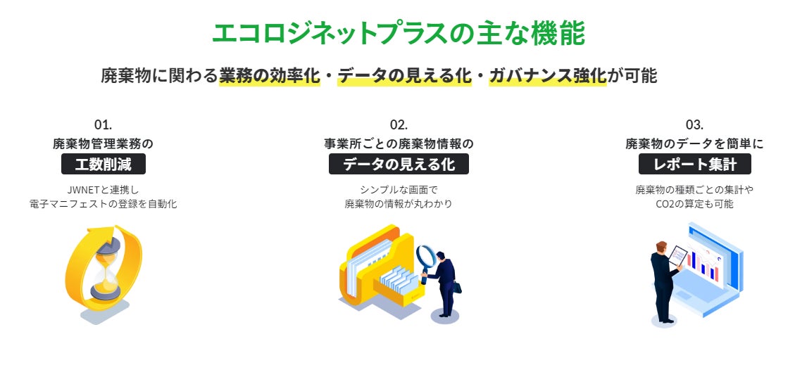 株式会社イーコス(本社:東京都千代田区、代表:清水 浩三)は、すべての事業者の廃棄物業務を効率化・見える化するクラウドサービス「エコロジネットプラス」のサービスページリニューアルをお知らせします。