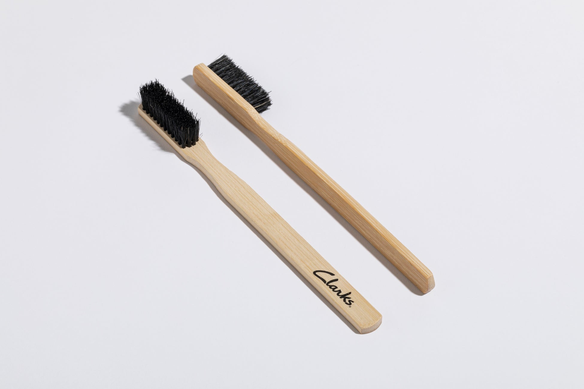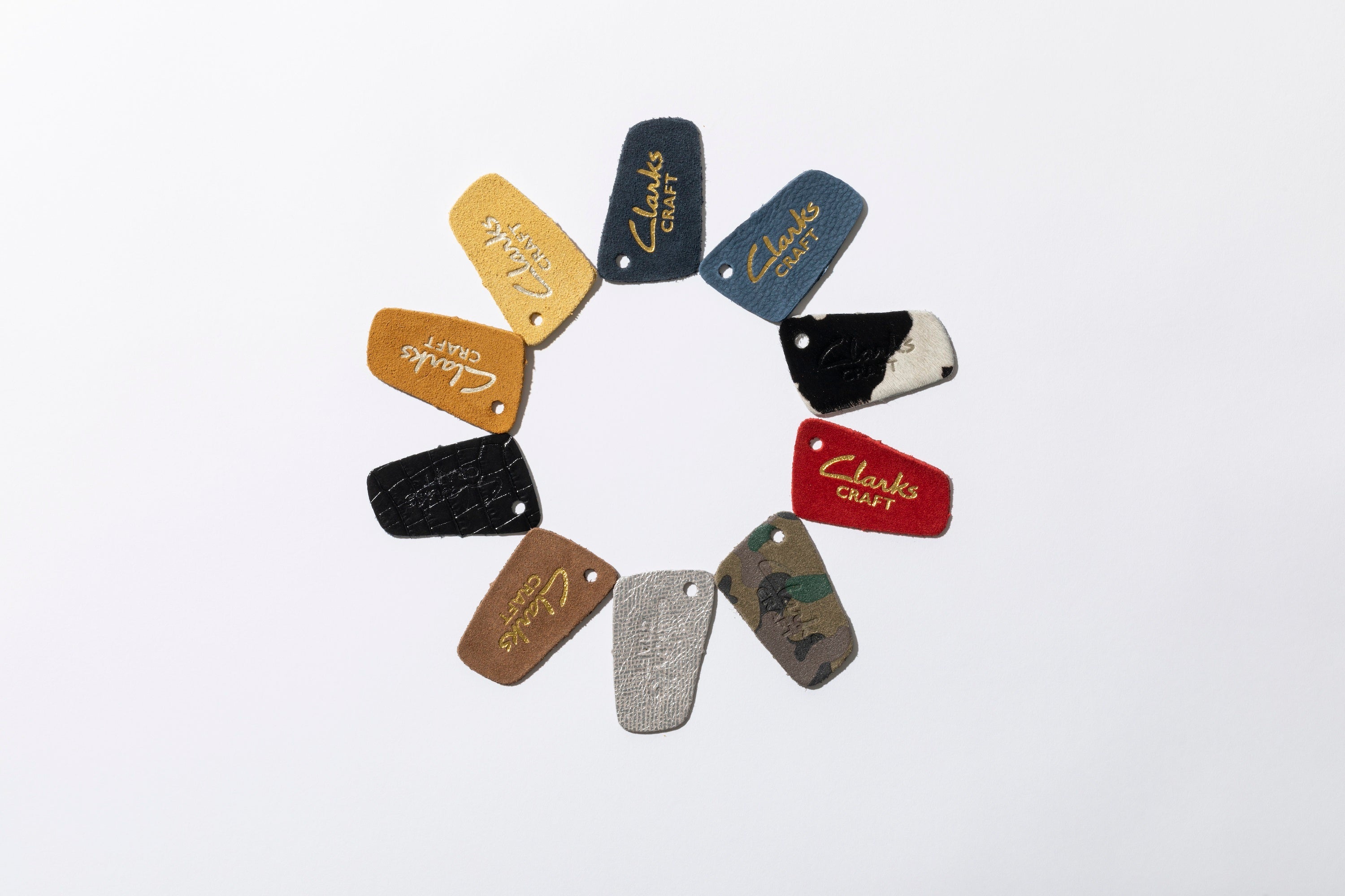 ショップオープンを記念して、ご購入いただいたお客様に先着で、クラークスのロゴ入りシューズブラシをプレゼント。また、スタイリングのアクセントとして使えるブランドのタグ「FOB(フォブ)」をノベルティとして配布いたします。10 種類の中から好みの色をお選びいただけます。
